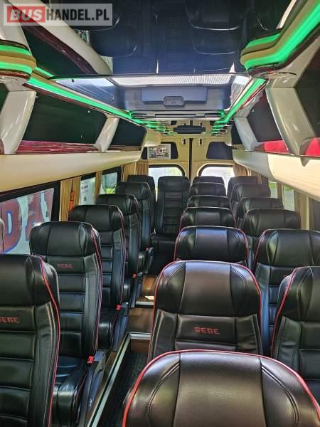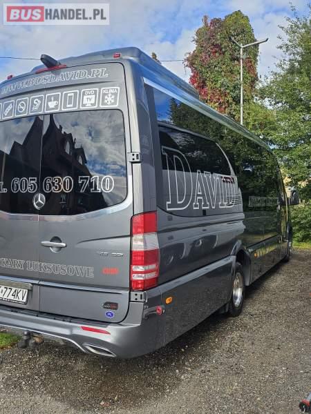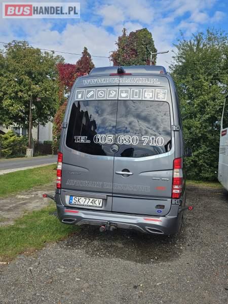Mercedes-Benz 519, luksusowy mini-autokar (23+1) Nowoczesny, bardzo komfortowy autobus z silnikiem 3. 0 V6 (190 KM), Euro 6, z przebiegiem 179 930 km, automatyczna skrzynia biegów, pierwszy właściciel. Najważniejsze atuty: Zabudowa Auto Cuby – konfiguracja 23+1, pojemna lodówka, ekspres do kawy/podgrzewacz wody (Cafe Bar) Przedłużany i powiększony bagażnik + kufry boczne Tylna kanapa przesuwana i bagażnik o 80 cm większy Skórzane, przesuwane fotele (z możliwością przesunięcia kanapy do środka korytarza) – pasy biodrowe na wszystkich siedzeniach Zawieszenie tylne na poduszkach. Klimatyzacja strefowa 11 kW Webasto + ogrzewanie postojowe oraz konwektorowe System audio/video/DVD, mikrofon, GPS, Pakiet AMG Perfekcyjny stan techniczny i wizualny – użytkowany wyłącznie w turystyce, garażowany TELEFON ENG: 885 440 444 Sprzedający: