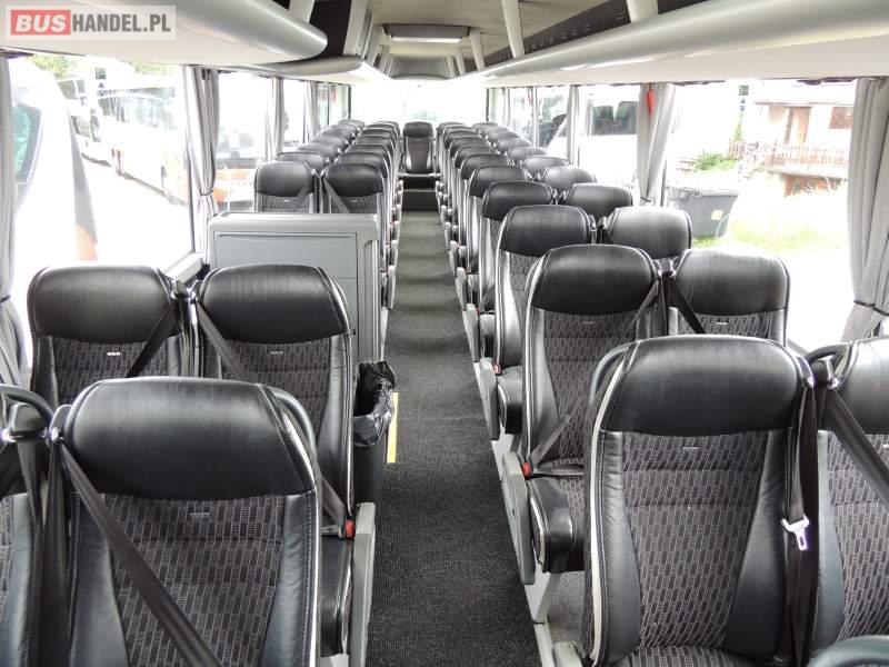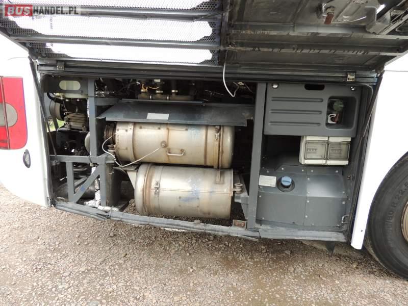 : video, WC, lodówka, caffebar, kabina sypialna, oświetlenie indywidualne, nawiewy dyszowe, siateczki, ABS, ASR, tempomat, retarder, telefon, nawigacja, CD, podnóżki, stoliczki, mikrofon, klimatyzacja, radio, sejf, regulacja wysokości nadwozia, centralny zamek, podwójne szyby boczne, wspomaganie kierownicy, elektryczne lusterka, fotele odchylane i rozsuwane, DVD, ogrzewanie stacjonarne, ESP