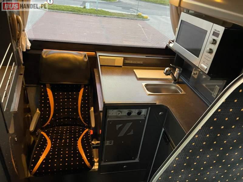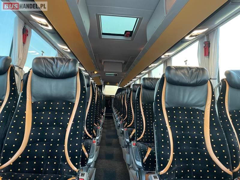 : klimatyzacja, WC, lodówka, caffebar, kabina sypialna, oświetlenie indywidualne, nawiewy dyszowe, fotele odchylane, podnóżki, stoliczki, siateczki, ABS, ASR, tempomat, retarder, telefon, nawigacja, CD, mikrofon, radio, fotele odchylane i rozsuwane, kuchenka mikrofalowa, wyświetlacz matrix, sejf, regulacja wysokości nadwozia, centralny zamek, podwójne szyby boczne, wspomaganie kierownicy, elektryczne lusterka, ogrzewanie stacjonarne, DVD, hak holowniczy, ESP