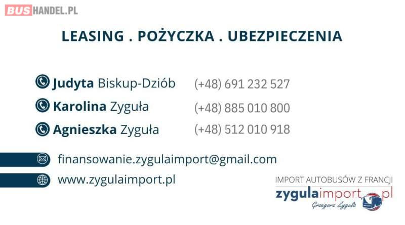 TEMSA TOURMALIN - Sprowadzony z Francji - Udokumentowany przebieg - Pojazd w pełni przygotowany do rejestracji - Tempomat - Retarder - Klimatyzacja - Webasto - Euro 5 - 64 miejsca siedzące + 12 miejsc stojących - Długość: 12, 80 M - Szerokość: 2, 55 M - Wysokość: 3, 25 M Nasza firma zajmuje się sprzedażą importowanych autobusów i busów z Francji. W naszej ofercie znajdą Państwo szeroki wybór autobusów turystycznych, szkolnych, miejskich, międzymiastowych, busów i minibusów wszystkich marek. Na naszym placu jest blisko 200 sztuk pojazdów. Sprowadzamy autobusy o konkretnej specyfikacji na życzenie klienta. Pomagamy w uzyskaniu finansowania leasingiem lub kredytem. Wszystkie dostępne autobusy znajdą Państwo na naszej stronie internetowej: www. zygulaimport. pl Siedziba firmy: ul. Wolności 3, 26-010 Bodzentyn Pracujemy od poniedziałku do piątku w godzinach: 8. 00 – 18. 00 w sobotę w godzinach: 8. 00 – 14. 00 w niedzielę: kontakt telefoniczny Grzegorz Zyguła : +48 570 570 666 Sławomir Zyguła: +48 603 631 536 Biuro: Judyta Biskup – Dziób: + 48 691 232 527 e-mail: puhzygula@onet. pl Finansowanie: Agnieszka Zyguła +48 512 010 918 Judyta Biskup – Dziób: + 48 691 232 527 Karolina Zyguła: +48 885 010 800 e-mail: finansowanie. zygulaimport@gmail. com Ubezpieczenia: Agnieszka Zyguła +48 512 010 918 e-mail: a. zygula. 2@gmail. com Sprzedający: