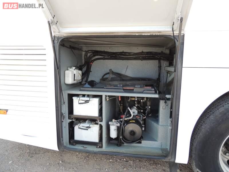 : video, lodówka, oświetlenie indywidualne, nawiewy dyszowe, ABS, ASR, tempomat, retarder, CD, podnóżki, klimatyzacja, radio, rampa dla inwalidów, regulacja wysokości nadwozia, centralny zamek, podwójne szyby boczne, wspomaganie kierownicy, elektryczne lusterka, fotele odchylane i rozsuwane, DVD, ogrzewanie stacjonarne