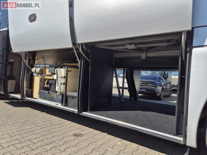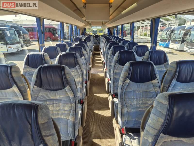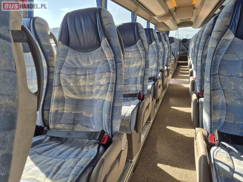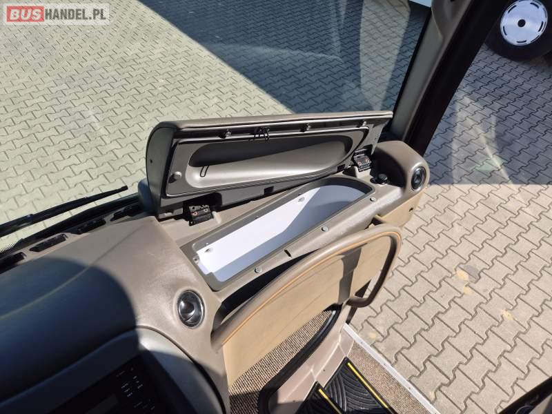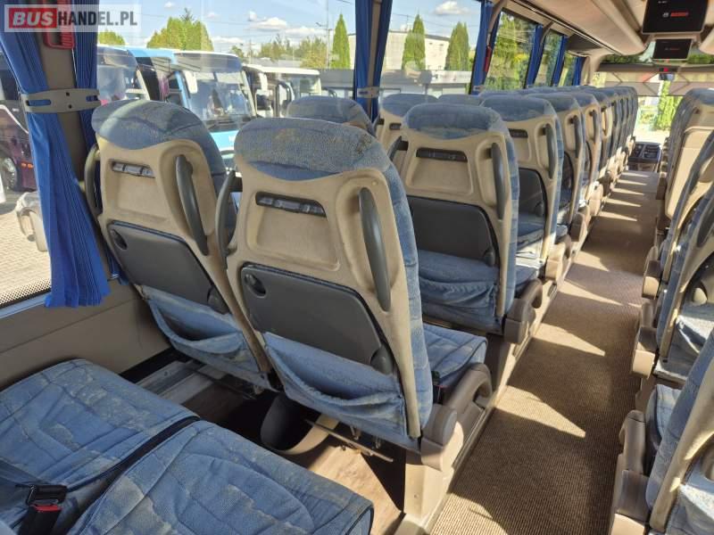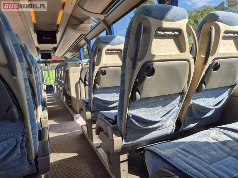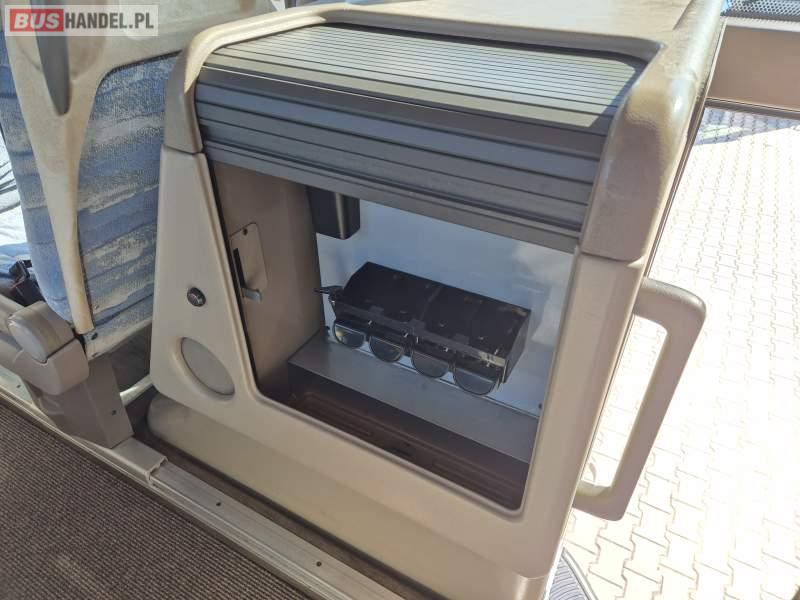 : video, WC, lodówka, caffebar, fotele odchylane, oświetlenie indywidualne, siateczki, ABS, tempomat, retarder, podnóżki, stoliczki, mikrofon, klimatyzacja, radio, regulacja wysokości nadwozia, centralny zamek, podwójne szyby boczne, wspomaganie kierownicy, elektryczne lusterka, DVD, ogrzewanie stacjonarne