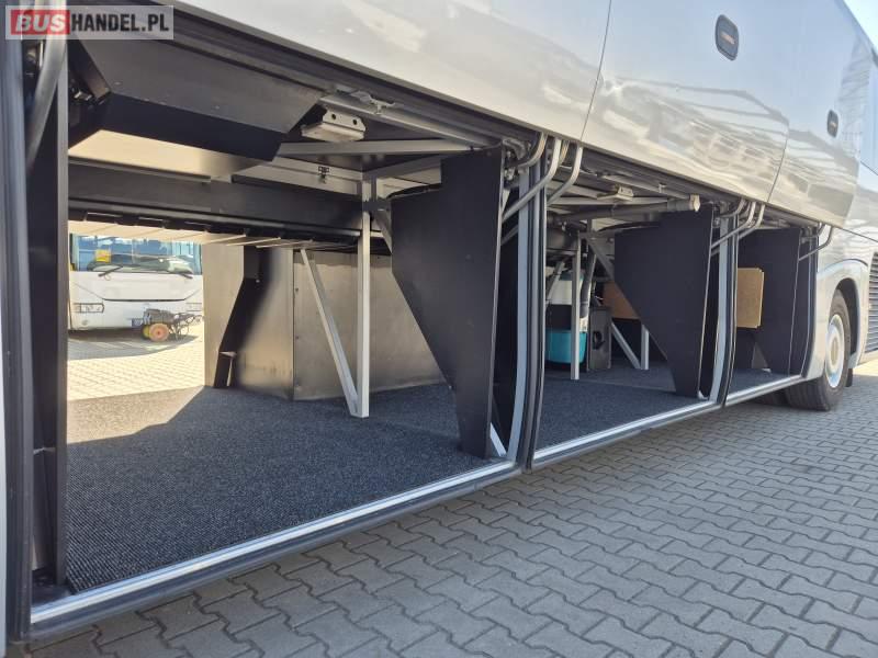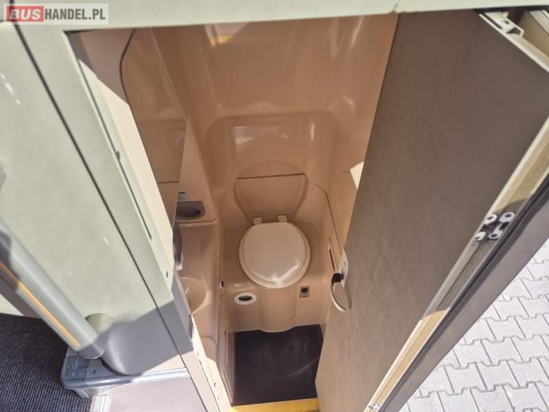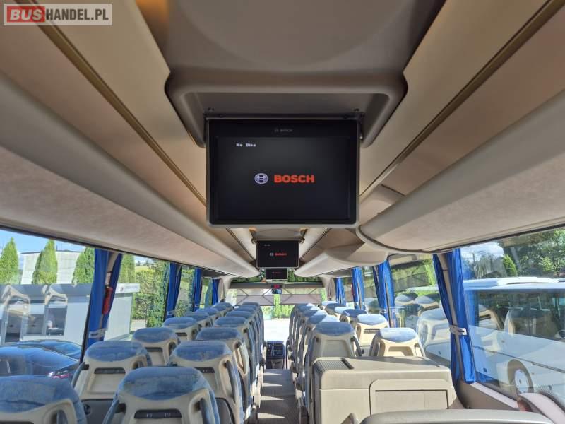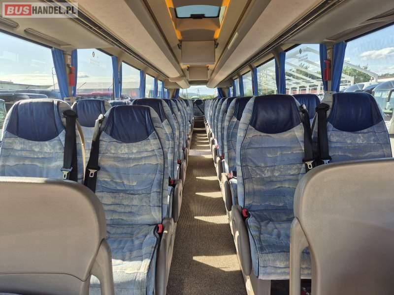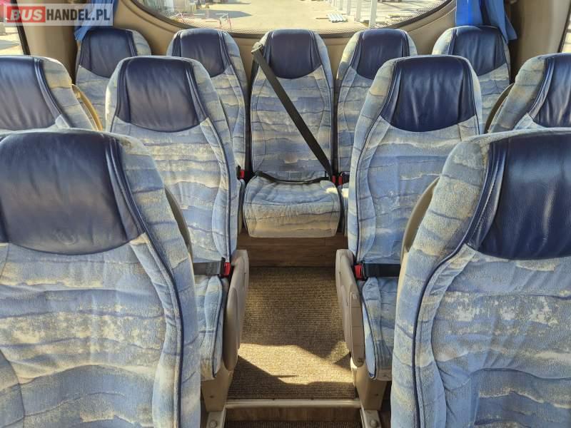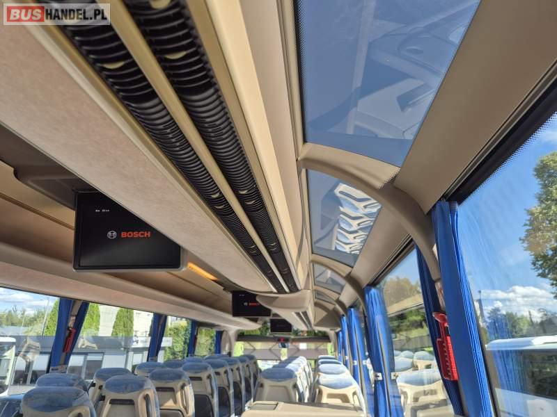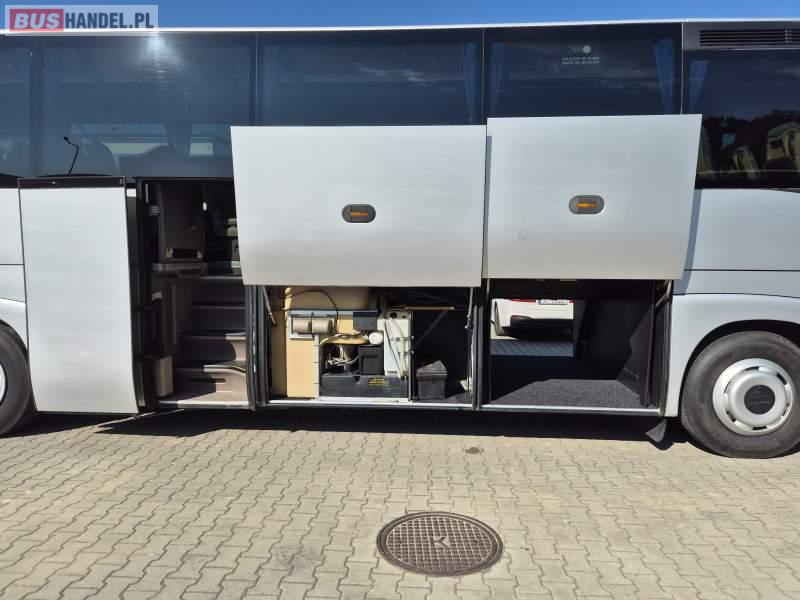 : video, WC, lodówka, caffebar, fotele odchylane, oświetlenie indywidualne, siateczki, ABS, tempomat, retarder, podnóżki, stoliczki, mikrofon, klimatyzacja, radio, regulacja wysokości nadwozia, centralny zamek, podwójne szyby boczne, wspomaganie kierownicy, elektryczne lusterka, DVD, ogrzewanie stacjonarne