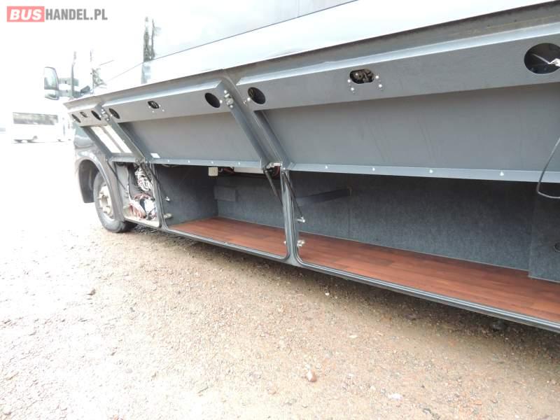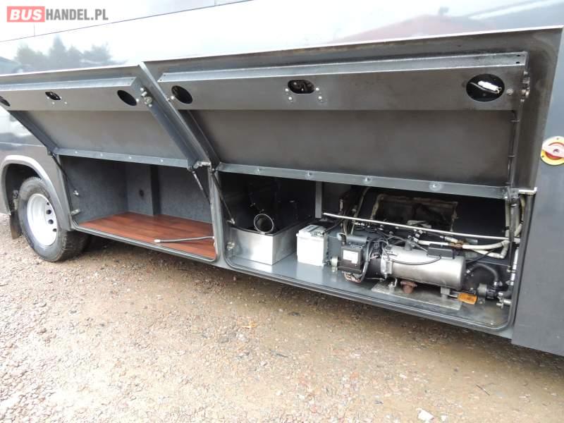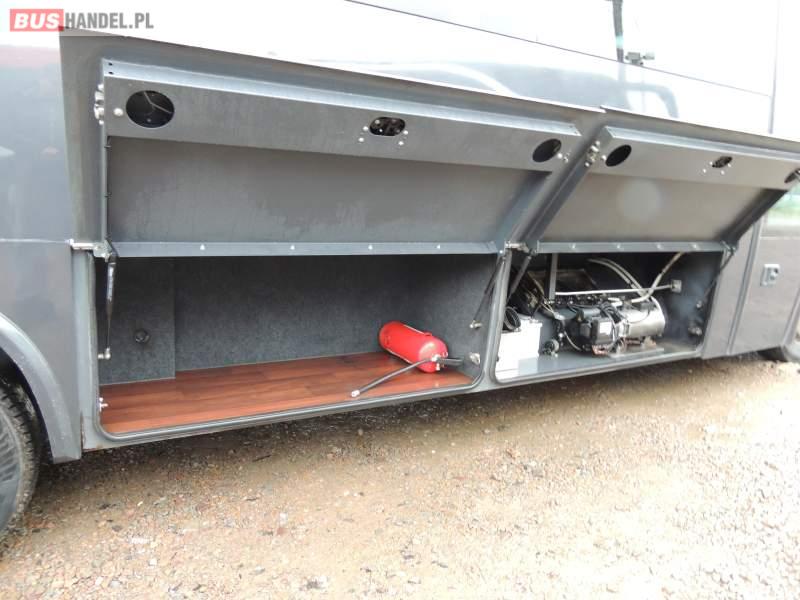 : video, oświetlenie indywidualne, nawiewy dyszowe, ABS, ASR, tempomat, retarder, CD, klimatyzacja, radio, centralny zamek, podwójne szyby boczne, wspomaganie kierownicy, elektryczne lusterka, fotele odchylane i rozsuwane, DVD, ogrzewanie stacjonarne, ESP