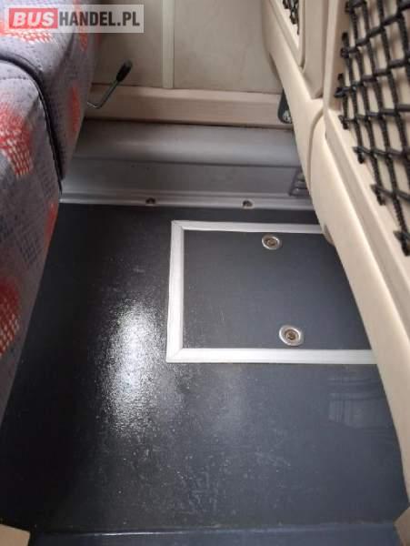 : video, lodówka, caffebar, oświetlenie indywidualne, nawiewy dyszowe, siateczki, ABS, ASR, tempomat, retarder, nawigacja, CD, podnóżki, stoliczki, mikrofon, klimatyzacja, radio, wyświetlacz matrix, centralny zamek, podwójne szyby boczne, wspomaganie kierownicy, elektryczne lusterka, fotele odchylane i rozsuwane, DVD, ogrzewanie stacjonarne, ESP