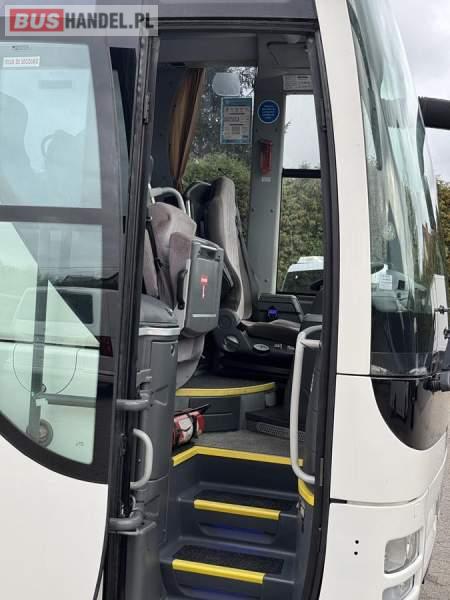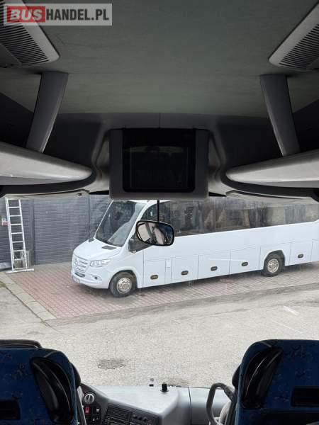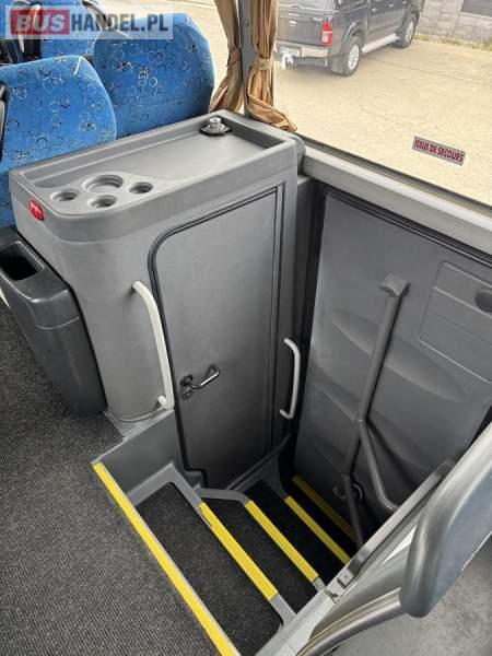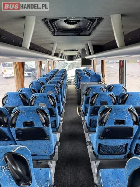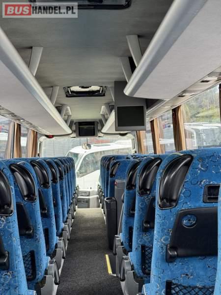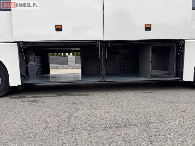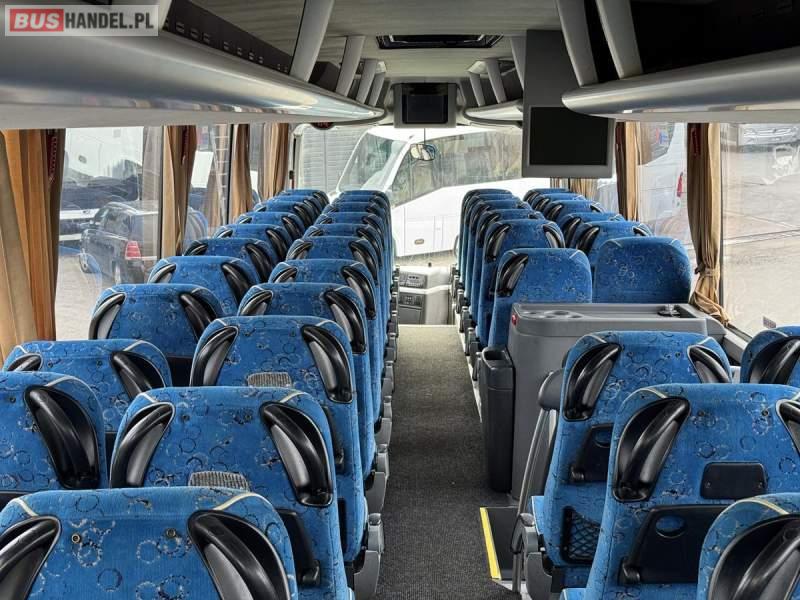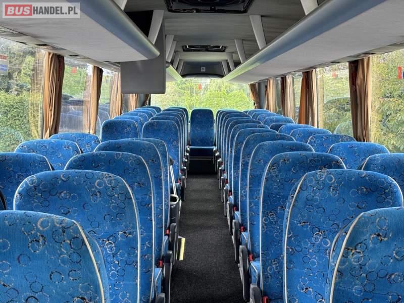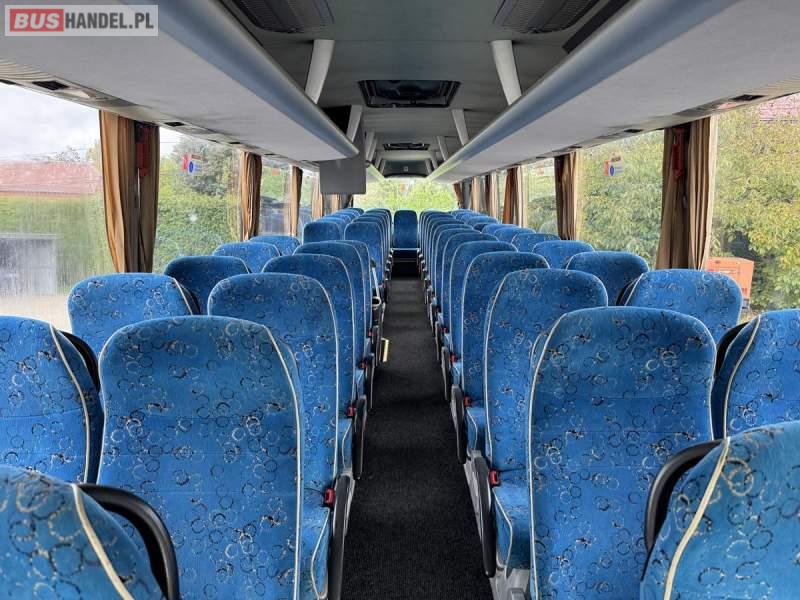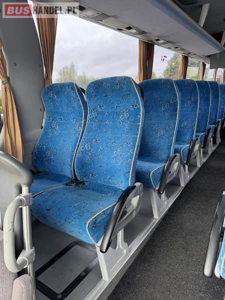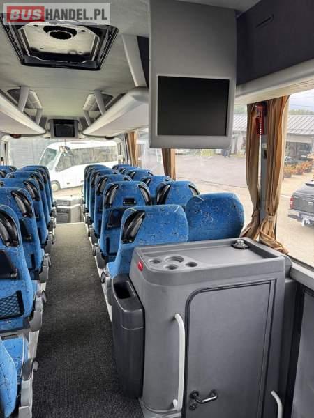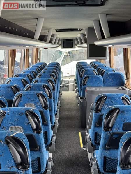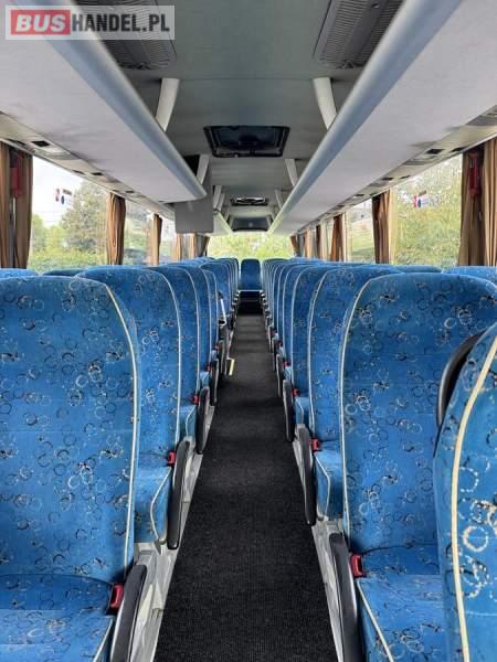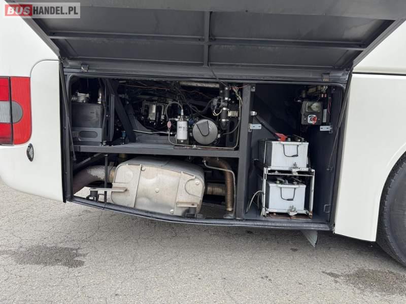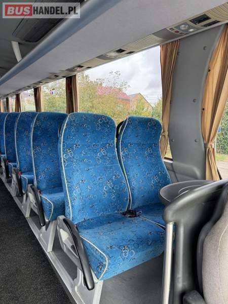 : klimatyzacja, lodówka, oświetlenie indywidualne, nawiewy dyszowe, fotele odchylane, podnóżki, stoliczki, siateczki, ABS, ASR, tempomat, retarder, mikrofon, radio, sejf, regulacja wysokości nadwozia, centralny zamek, podwójne szyby boczne, wspomaganie kierownicy, elektryczne lusterka, ogrzewanie stacjonarne, DVD