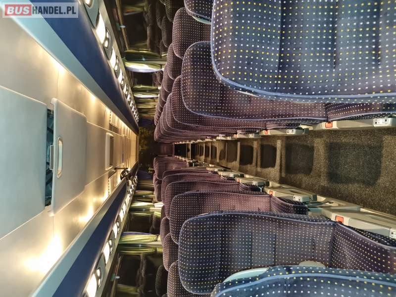 : klimatyzacja, video, WC, lodówka, caffebar, kabina sypialna, oświetlenie indywidualne, nawiewy dyszowe, podnóżki, stoliczki, siateczki, ABS, ASR, tempomat, retarder, CD, mikrofon, radio, fotele odchylane i rozsuwane, kuchenka mikrofalowa, centralny zamek, podwójne szyby boczne, wspomaganie kierownicy, elektryczne lusterka, ogrzewanie stacjonarne, DVD, ESP