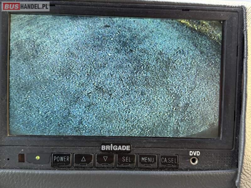 : klimatyzacja, video, oświetlenie indywidualne, nawiewy dyszowe, fotele odchylane, podnóżki, ABS, ASR, tempomat, retarder, CD, mikrofon, radio, centralny zamek, podwójne szyby boczne, wspomaganie kierownicy, elektryczne lusterka, ogrzewanie stacjonarne, DVD