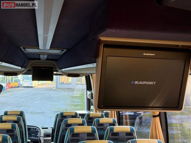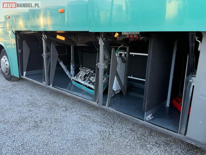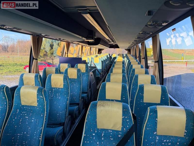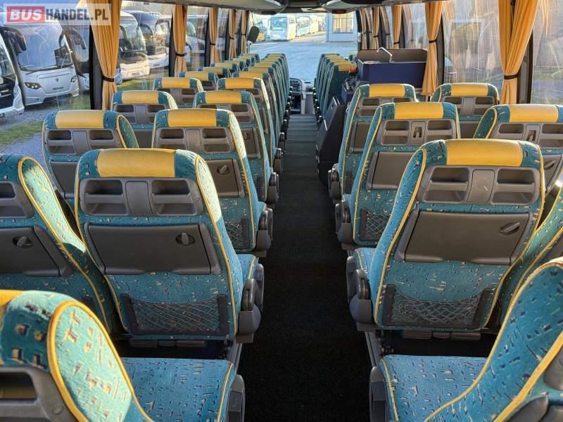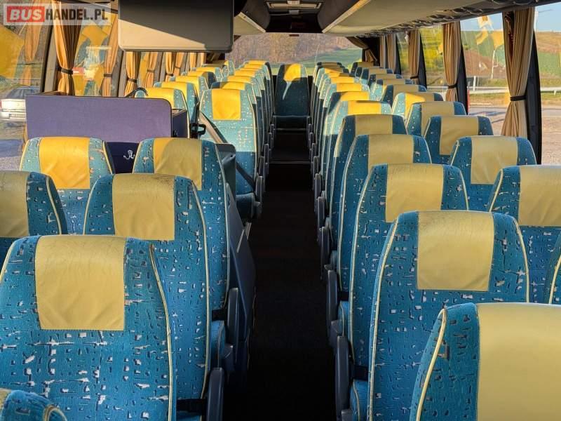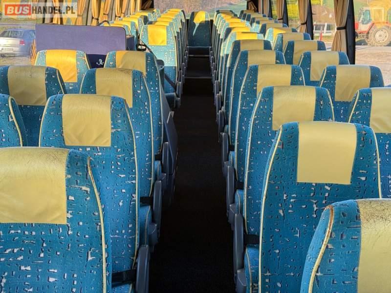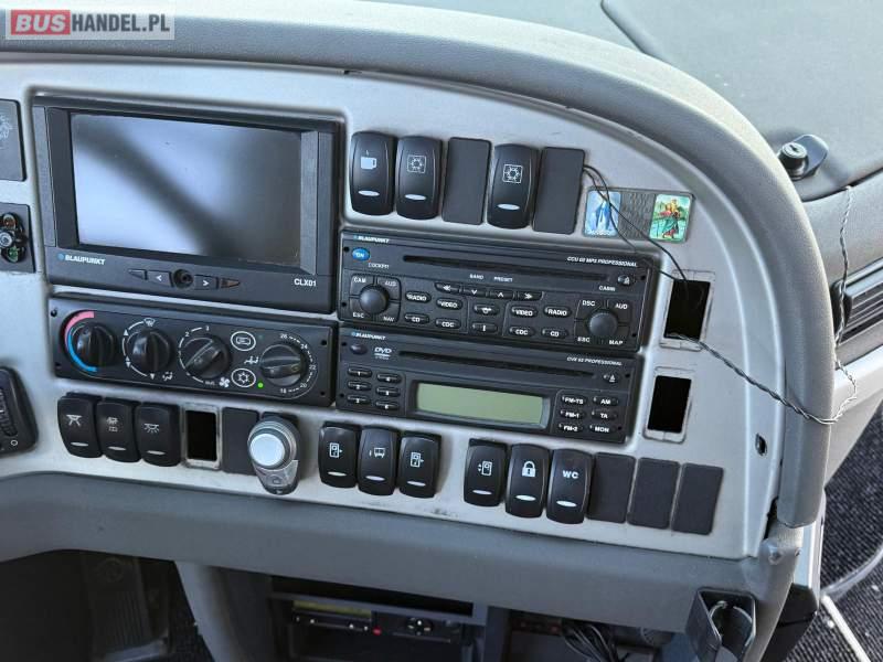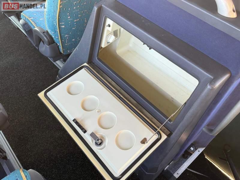 : klimatyzacja, video, WC, lodówka, caffebar, kabina sypialna, oświetlenie indywidualne, nawiewy dyszowe, podnóżki, stoliczki, siateczki, ABS, ASR, tempomat, retarder, CD, mikrofon, radio, fotele odchylane i rozsuwane, regulacja wysokości nadwozia, centralny zamek, podwójne szyby boczne, wspomaganie kierownicy, elektryczne lusterka, ogrzewanie stacjonarne, DVD, ESP