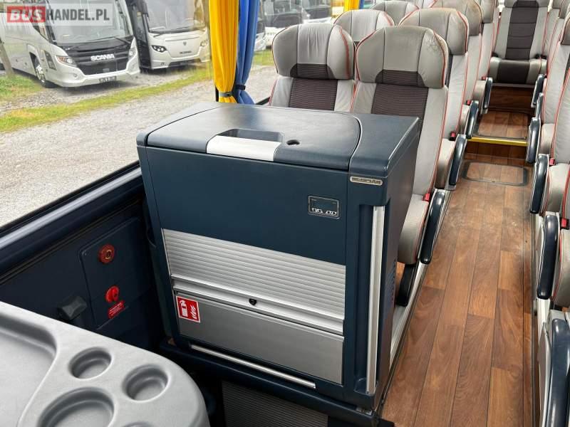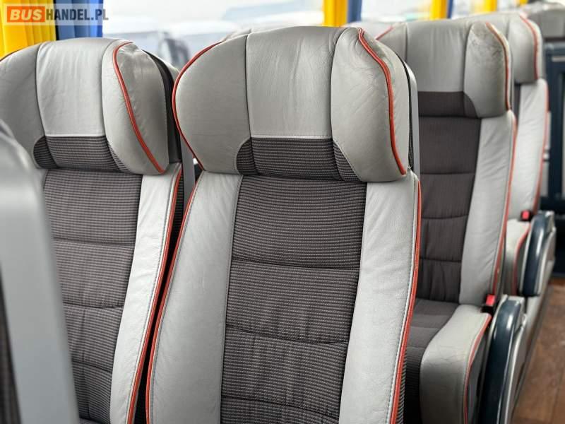 : klimatyzacja, video, WC, lodówka, caffebar, kabina sypialna, oświetlenie indywidualne, nawiewy dyszowe, podnóżki, stoliczki, siateczki, ABS, ASR, tempomat, retarder, CD, mikrofon, radio, fotele odchylane i rozsuwane, regulacja wysokości nadwozia, centralny zamek, podwójne szyby boczne, wspomaganie kierownicy, elektryczne lusterka, ogrzewanie stacjonarne, DVD, ESP