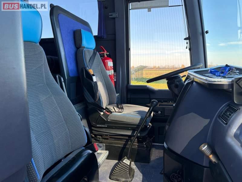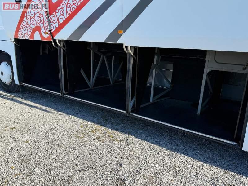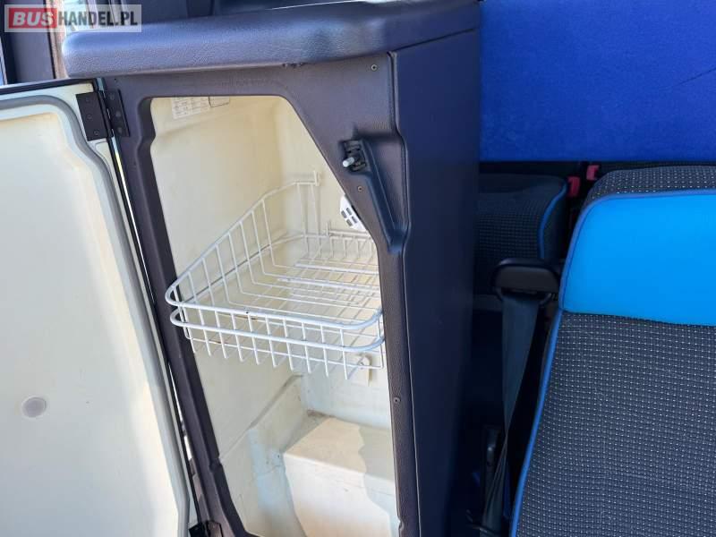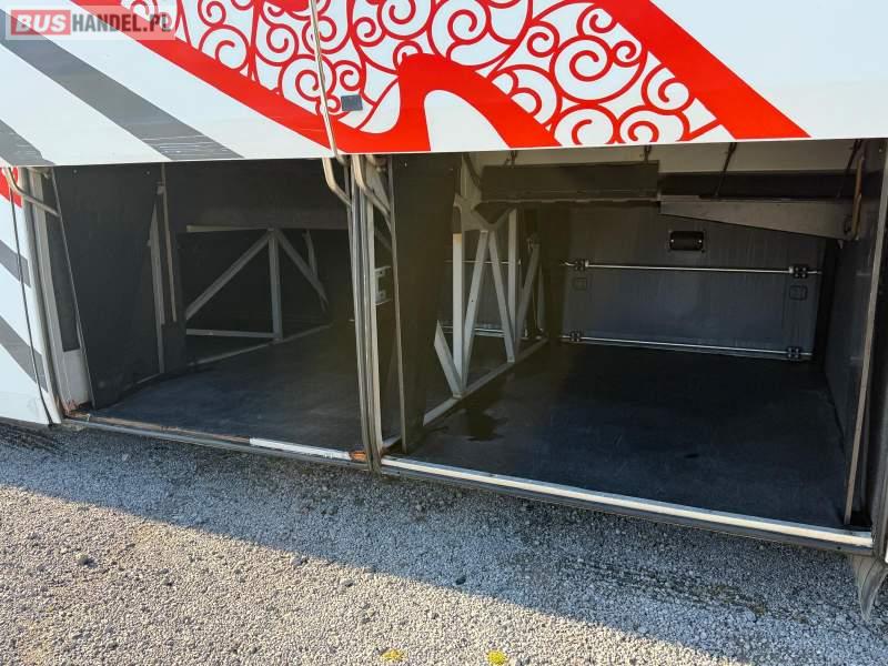 : klimatyzacja, video, lodówka, caffebar, oświetlenie indywidualne, nawiewy dyszowe, fotele odchylane, ABS, ASR, tempomat, retarder, CD, mikrofon, radio, regulacja wysokości nadwozia, centralny zamek, podwójne szyby boczne, wspomaganie kierownicy, elektryczne lusterka, ogrzewanie stacjonarne, DVD