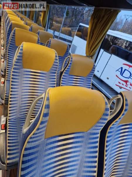 : klimatyzacja, video, WC, lodówka, caffebar, oświetlenie indywidualne, nawiewy dyszowe, podnóżki, stoliczki, siateczki, ABS, ASR, tempomat, retarder, telefon, nawigacja, CD, mikrofon, radio, fotele odchylane i rozsuwane, sejf, regulacja wysokości nadwozia, centralny zamek, podwójne szyby boczne, wspomaganie kierownicy, elektryczne lusterka, ogrzewanie stacjonarne, DVD, hak holowniczy, ESP