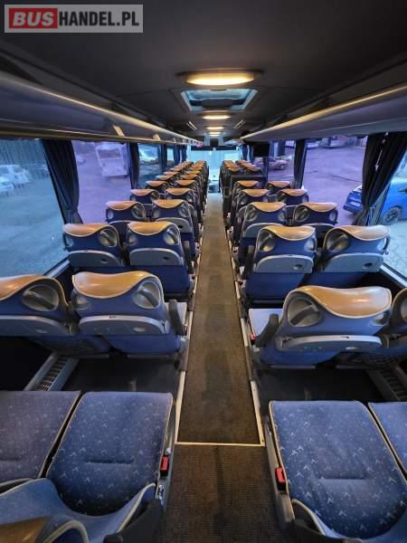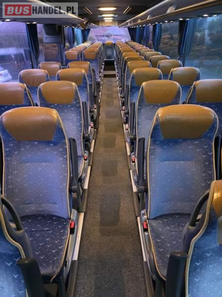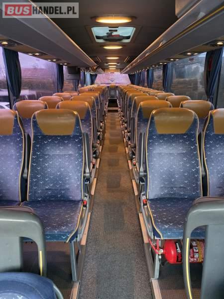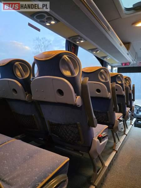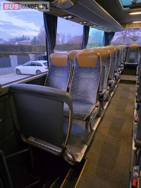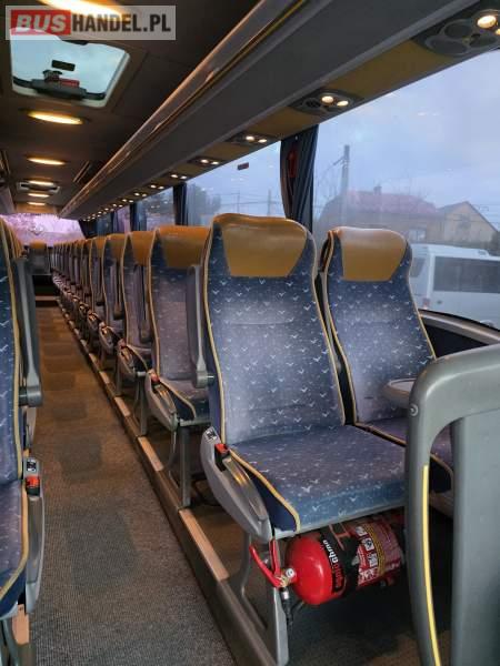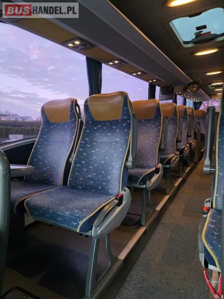 : klimatyzacja, WC, lodówka, caffebar, kabina sypialna, oświetlenie indywidualne, nawiewy dyszowe, fotele odchylane, podnóżki, ABS, ASR, retarder, mikrofon, radio, sejf, regulacja wysokości nadwozia, centralny zamek, podwójne szyby boczne, elektryczne lusterka, ogrzewanie stacjonarne, DVD, ESP