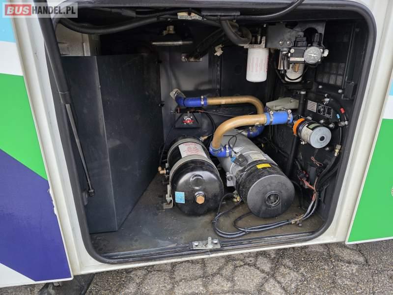 : lodówka, fotele odchylane, oświetlenie indywidualne, nawiewy dyszowe, siateczki, ABS, ASR, tempomat, retarder, podnóżki, stoliczki, mikrofon, klimatyzacja, radio, regulacja wysokości nadwozia, centralny zamek, podwójne szyby boczne, wspomaganie kierownicy, elektryczne lusterka, ogrzewanie stacjonarne