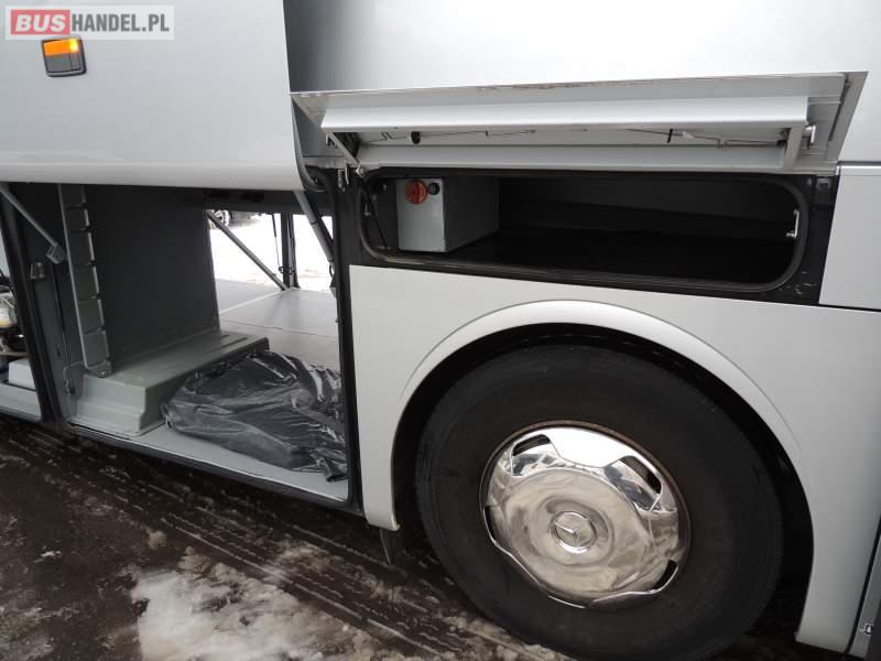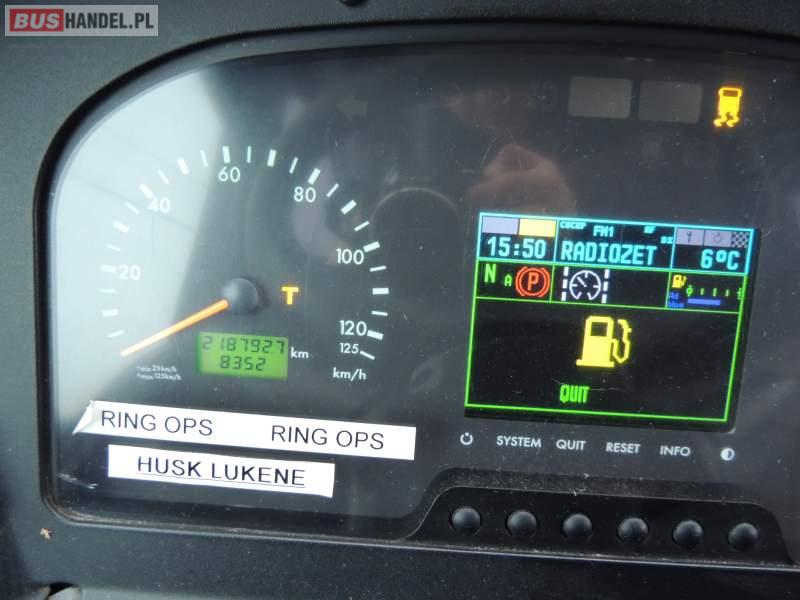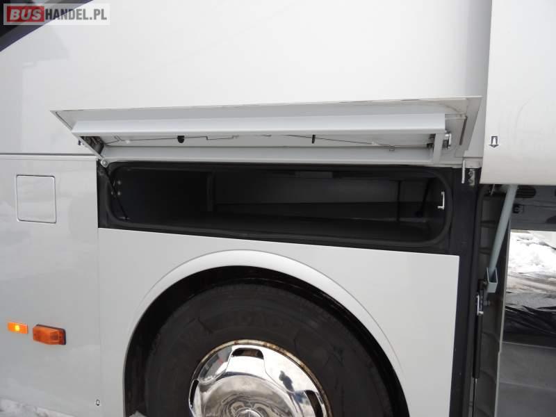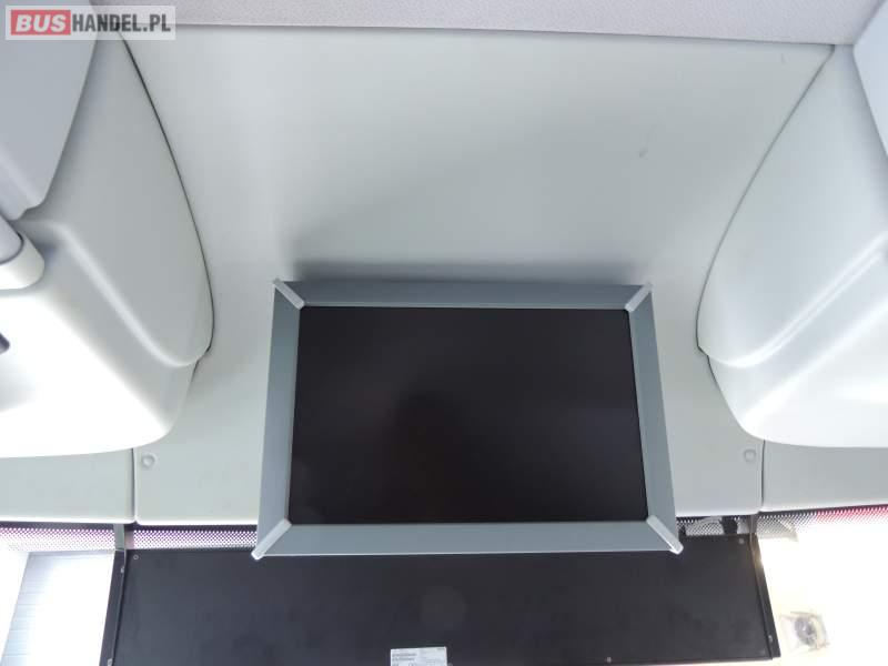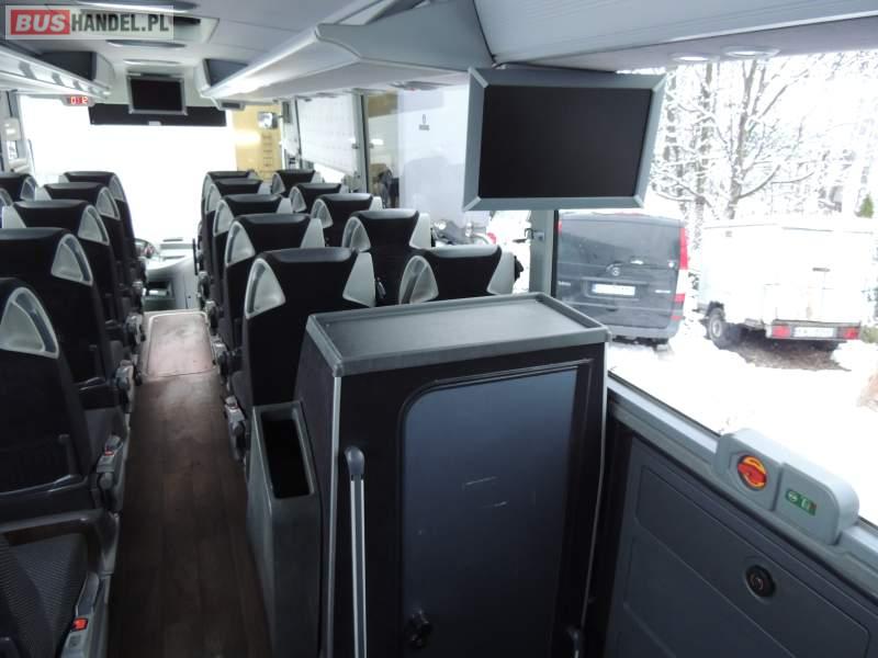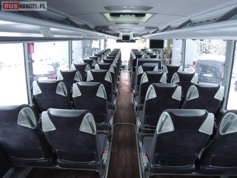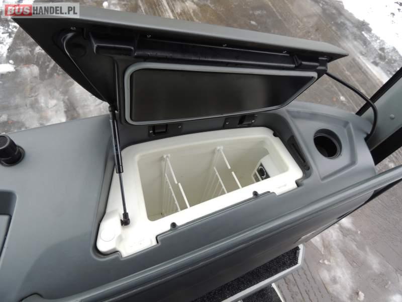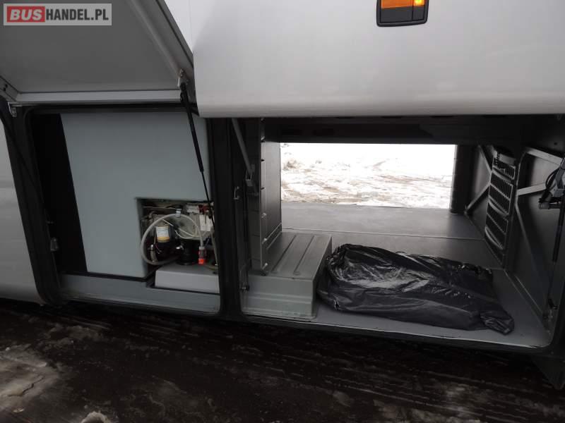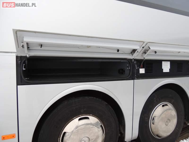 : klimatyzacja, video, WC, lodówka, oświetlenie indywidualne, nawiewy dyszowe, podnóżki, siateczki, ABS, ASR, tempomat, retarder, CD, mikrofon, radio, fotele odchylane i rozsuwane, regulacja wysokości nadwozia, centralny zamek, podwójne szyby boczne, wspomaganie kierownicy, ogrzewanie stacjonarne, DVD, ESP