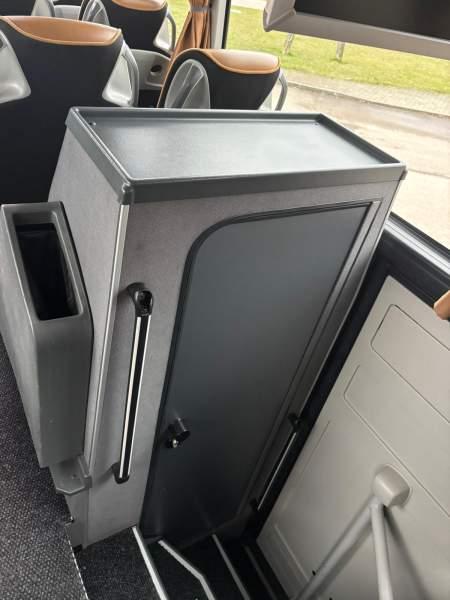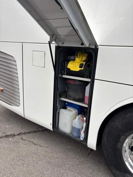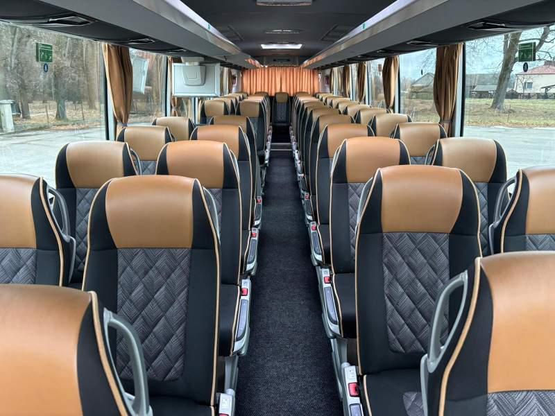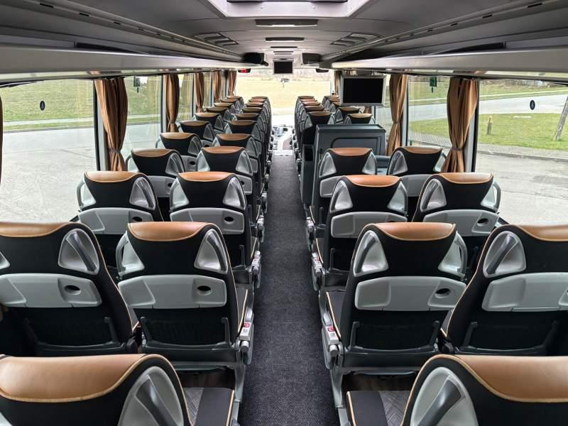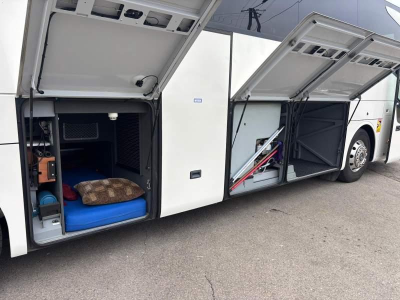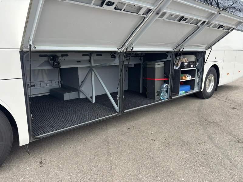 : klimatyzacja, WC, lodówka, caffebar, kabina sypialna, oświetlenie indywidualne, nawiewy dyszowe, podnóżki, stoliczki, siateczki, ABS, ASR, tempomat, retarder, nawigacja, CD, mikrofon, radio, fotele odchylane i rozsuwane, sejf, regulacja wysokości nadwozia, centralny zamek, podwójne szyby boczne, wspomaganie kierownicy, aluminiowe felgi, elektryczne lusterka, ogrzewanie stacjonarne, DVD, ESP