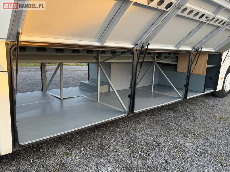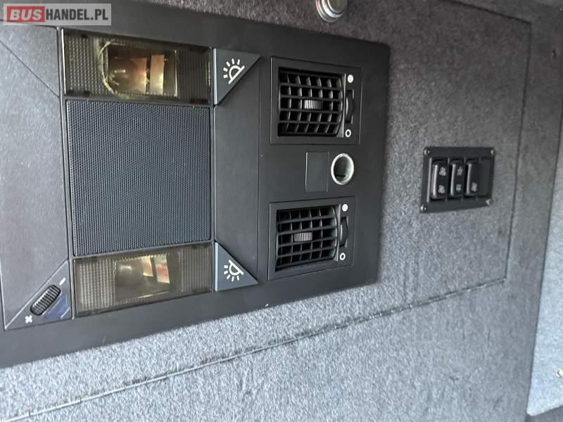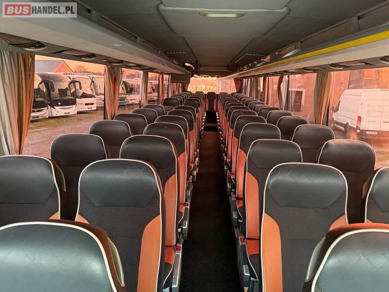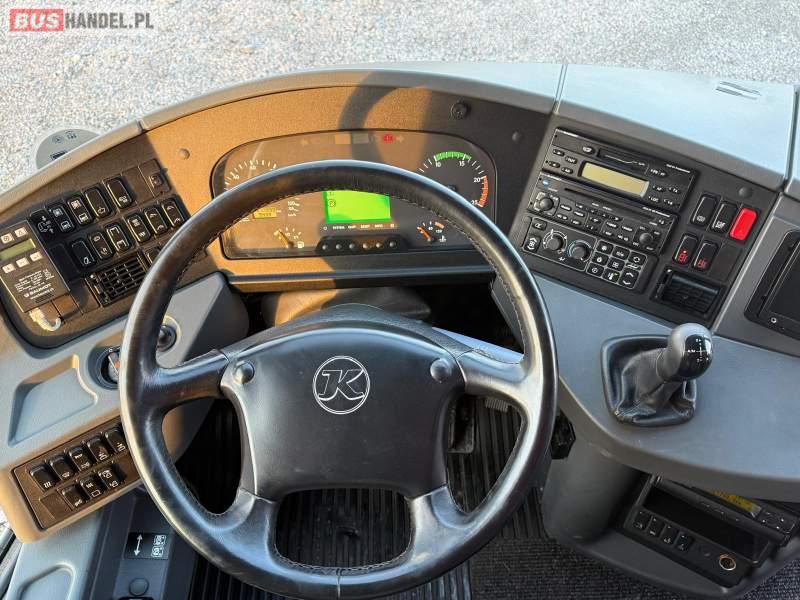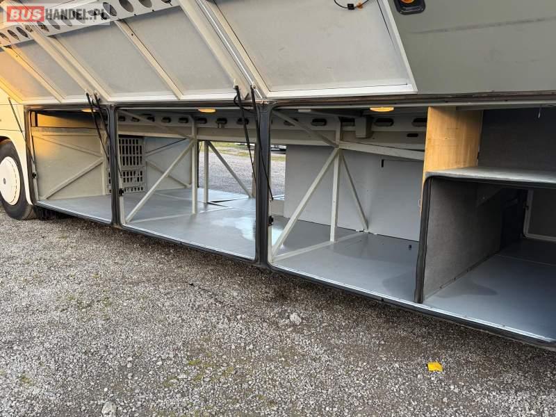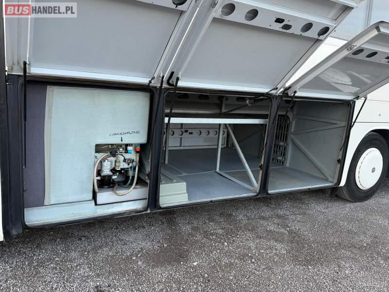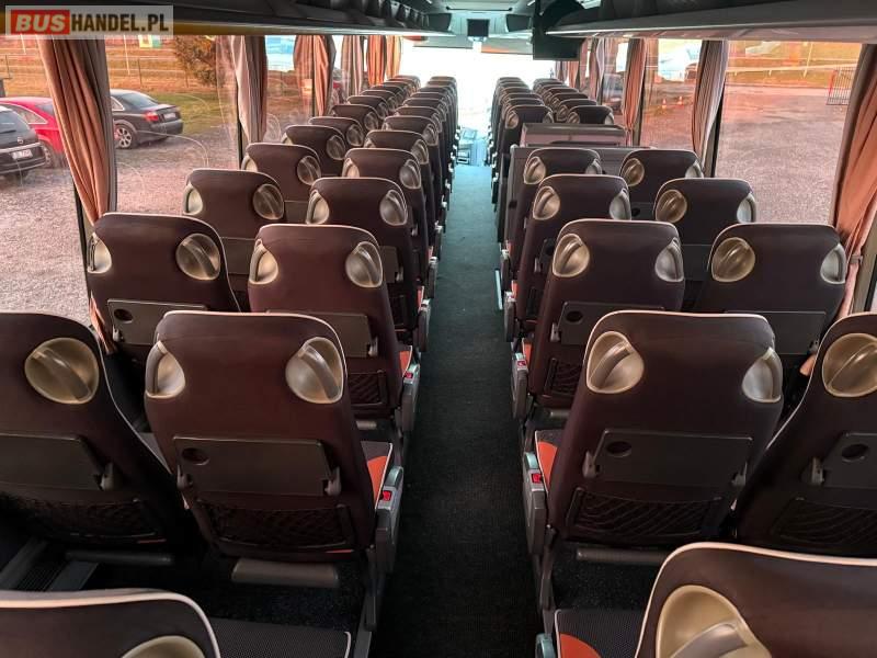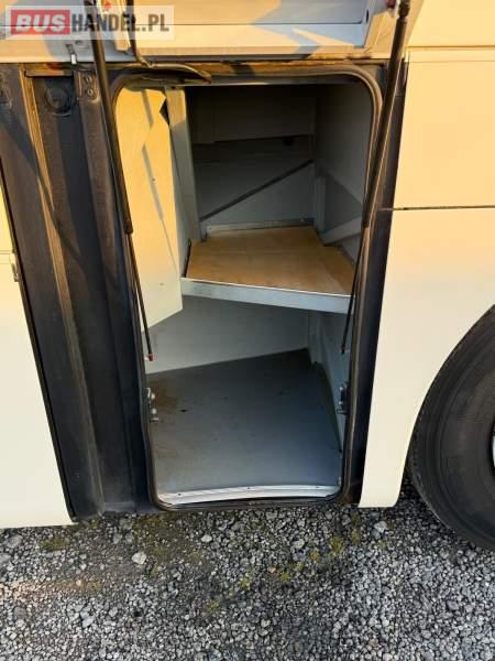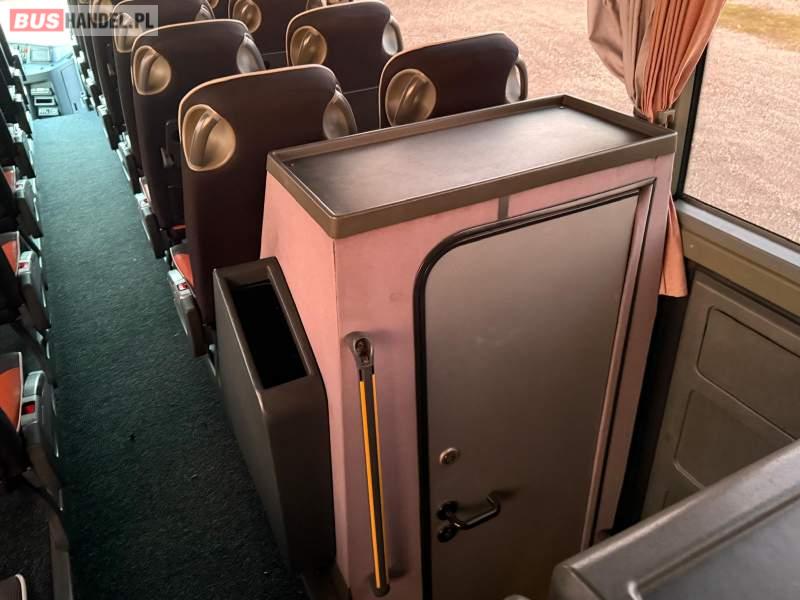 : video, WC, lodówka, caffebar, kabina sypialna, oświetlenie indywidualne, nawiewy dyszowe, siateczki, ABS, ASR, tempomat, retarder, CD, podnóżki, stoliczki, mikrofon, klimatyzacja, radio, regulacja wysokości nadwozia, centralny zamek, podwójne szyby boczne, wspomaganie kierownicy, elektryczne lusterka, fotele odchylane i rozsuwane, DVD, ogrzewanie stacjonarne, ESP