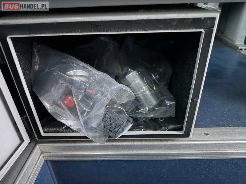 : lodówka, fotele odchylane, oświetlenie indywidualne, nawiewy dyszowe, siateczki, ABS, ASR, tempomat, retarder, podnóżki, stoliczki, mikrofon, klimatyzacja, radio, rampa dla inwalidów, regulacja wysokości nadwozia, centralny zamek, podwójne szyby boczne, wspomaganie kierownicy, elektryczne lusterka, DVD, ogrzewanie stacjonarne