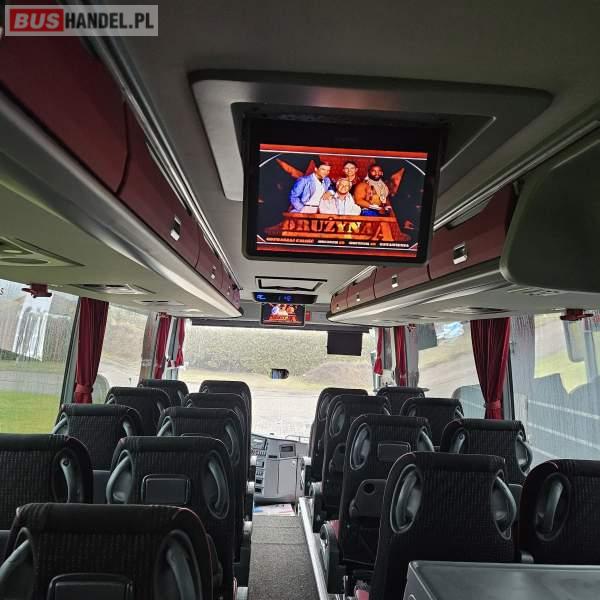 : video, WC, lodówka, fotele odchylane, oświetlenie indywidualne, nawiewy dyszowe, siateczki, ABS, ASR, tempomat, retarder, CD, podnóżki, stoliczki, mikrofon, klimatyzacja, radio, regulacja wysokości nadwozia, centralny zamek, podwójne szyby boczne, wspomaganie kierownicy, elektryczne lusterka, DVD, ogrzewanie stacjonarne, hak holowniczy, ESP
