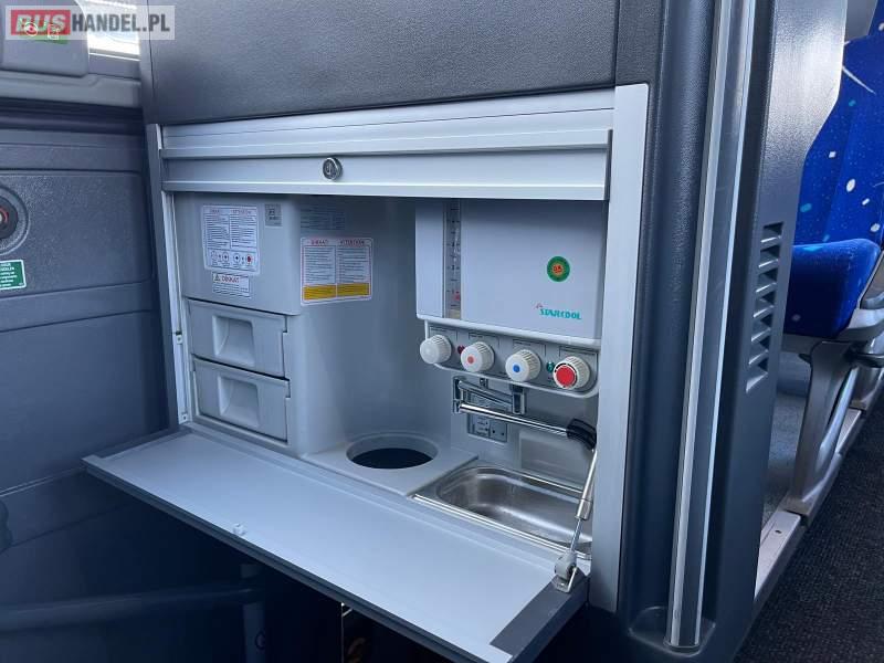 : WC, lodówka, fotele odchylane, oświetlenie indywidualne, tempomat, retarder, CD, mikrofon, klimatyzacja, radio, wspomaganie kierownicy, elektryczne lusterka, DVD, ESP