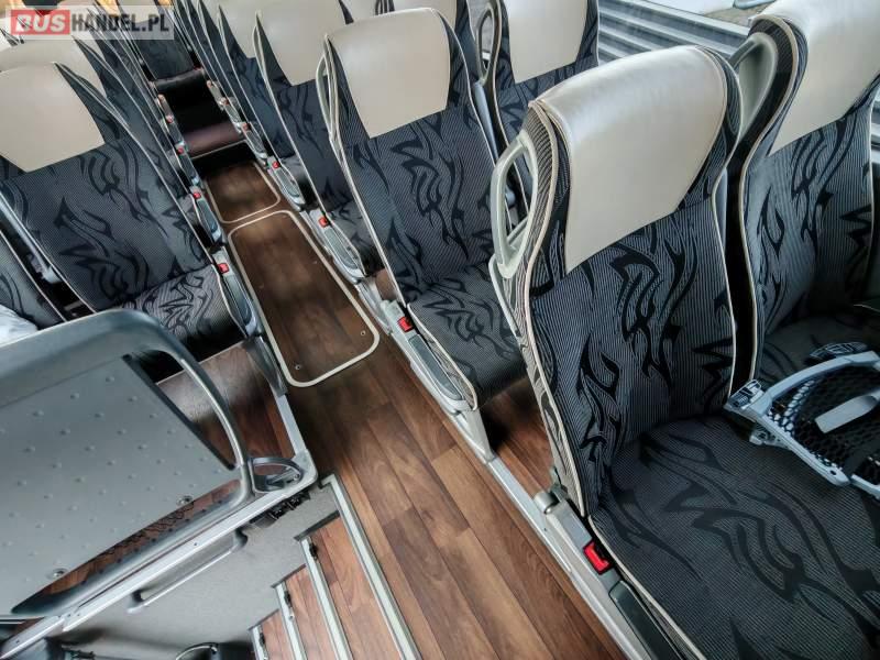 : klimatyzacja, video, WC, lodówka, caffebar, oświetlenie indywidualne, nawiewy dyszowe, podnóżki, stoliczki, siateczki, ABS, tempomat, retarder, telefon, nawigacja, CD, mikrofon, radio, fotele odchylane i rozsuwane, rampa dla inwalidów, sejf, regulacja wysokości nadwozia, centralny zamek, podwójne szyby boczne, wspomaganie kierownicy, aluminiowe felgi, elektryczne lusterka, ogrzewanie stacjonarne, DVD, ESP