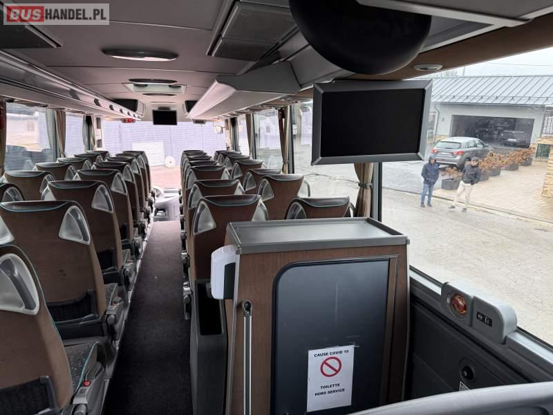 : WC, lodówka, oświetlenie indywidualne, nawiewy dyszowe, siateczki, ABS, ASR, tempomat, retarder, telefon, podnóżki, stoliczki, mikrofon, klimatyzacja, radio, sejf, regulacja wysokości nadwozia, centralny zamek, podwójne szyby boczne, wspomaganie kierownicy, elektryczne lusterka, aluminiowe felgi, fotele odchylane i rozsuwane, DVD, ogrzewanie stacjonarne, ESP
