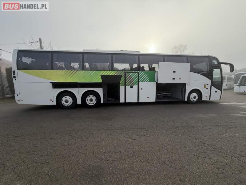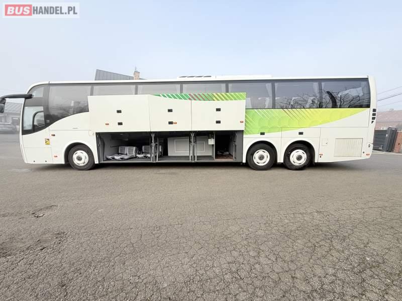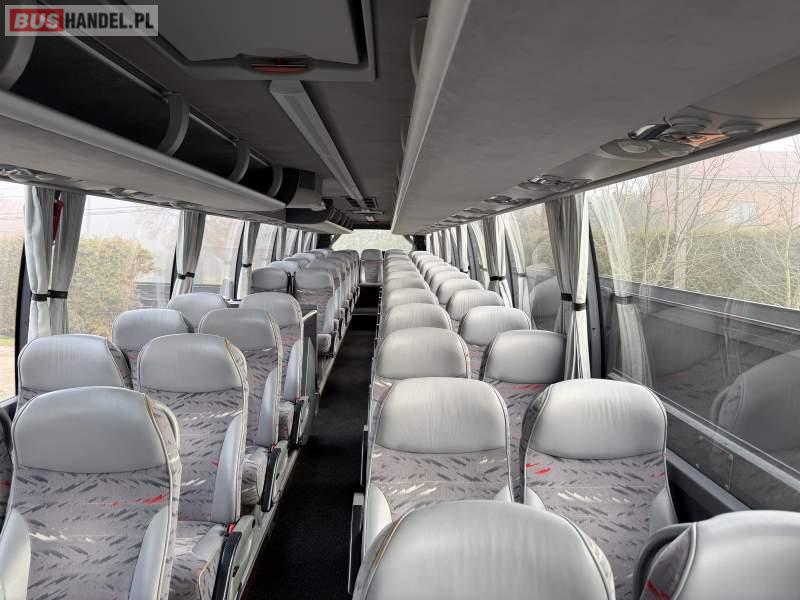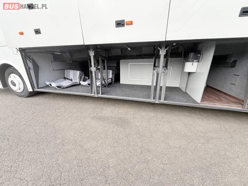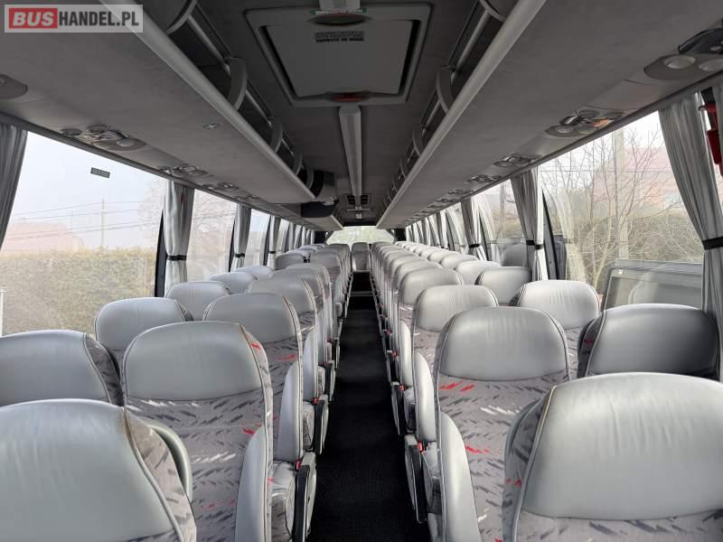 : klimatyzacja, WC, lodówka, caffebar, kabina sypialna, oświetlenie indywidualne, nawiewy dyszowe, podnóżki, stoliczki, siateczki, ABS, ASR, tempomat, retarder, mikrofon, radio, fotele odchylane i rozsuwane, sejf, regulacja wysokości nadwozia, centralny zamek, podwójne szyby boczne, wspomaganie kierownicy, elektryczne lusterka, ogrzewanie stacjonarne, DVD, ESP