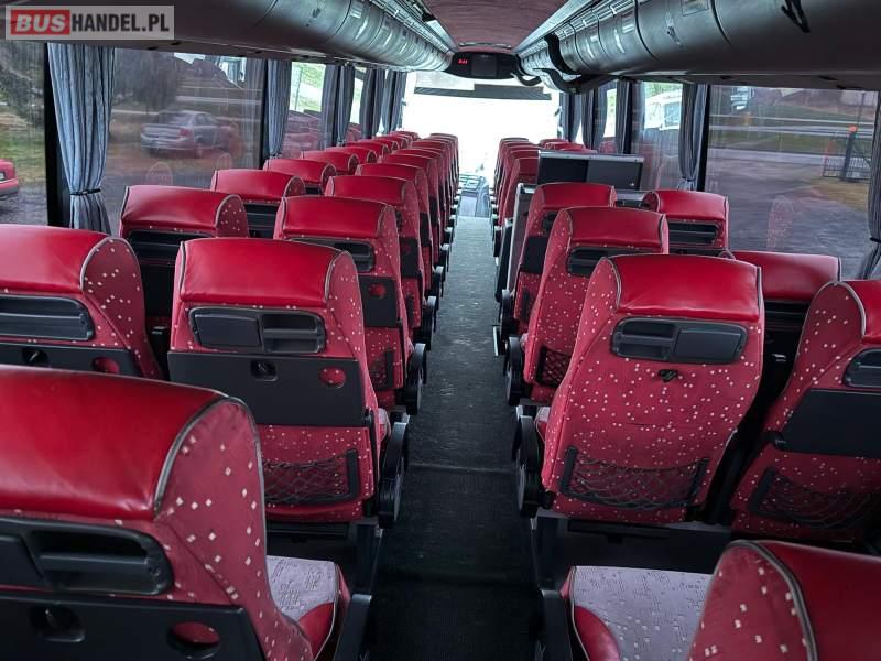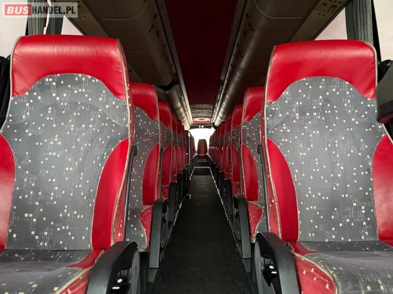 : video, WC, lodówka, caffebar, kabina sypialna, oświetlenie indywidualne, nawiewy dyszowe, siateczki, ABS, ASR, tempomat, retarder, CD, podnóżki, stoliczki, mikrofon, klimatyzacja, radio, wyświetlacz matrix, regulacja wysokości nadwozia, centralny zamek, podwójne szyby boczne, wspomaganie kierownicy, elektryczne lusterka, fotele odchylane i rozsuwane, DVD, ogrzewanie stacjonarne