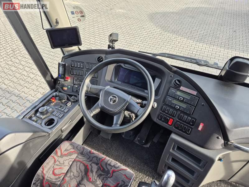 : video, WC, lodówka, kabina sypialna, fotele odchylane, oświetlenie indywidualne, siateczki, ABS, tempomat, retarder, telefon, nawigacja, CD, podnóżki, stoliczki, mikrofon, klimatyzacja, radio, rampa dla inwalidów, regulacja wysokości nadwozia, centralny zamek, podwójne szyby boczne, wspomaganie kierownicy, elektryczne lusterka, DVD, ogrzewanie stacjonarne
