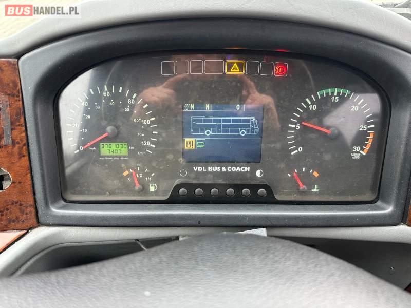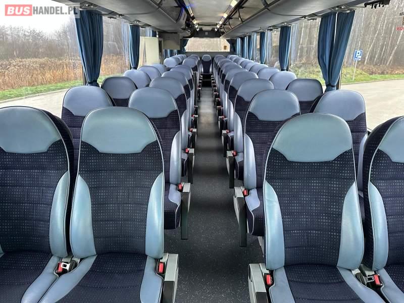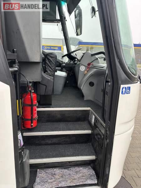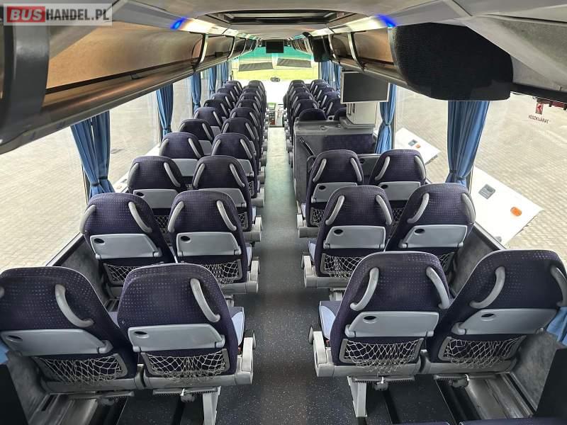 : klimatyzacja, video, WC, lodówka, caffebar, kabina sypialna, oświetlenie indywidualne, nawiewy dyszowe, fotele odchylane, podnóżki, stoliczki, siateczki, ABS, ASR, tempomat, retarder, telefon, nawigacja, CD, mikrofon, radio, fotele odchylane i rozsuwane, wyświetlacz matrix, rampa dla inwalidów, sejf, regulacja wysokości nadwozia, centralny zamek, podwójne szyby boczne, wspomaganie kierownicy, elektryczne lusterka, ogrzewanie stacjonarne, DVD, hak holowniczy, ESP