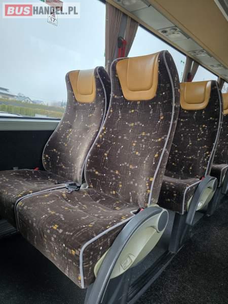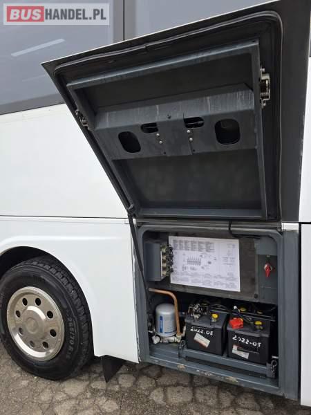 : lodówka, fotele odchylane, oświetlenie indywidualne, nawiewy dyszowe, siateczki, ABS, ASR, tempomat, retarder, podnóżki, stoliczki, mikrofon, klimatyzacja, radio, centralny zamek, podwójne szyby boczne, wspomaganie kierownicy, elektryczne lusterka, DVD, ogrzewanie stacjonarne