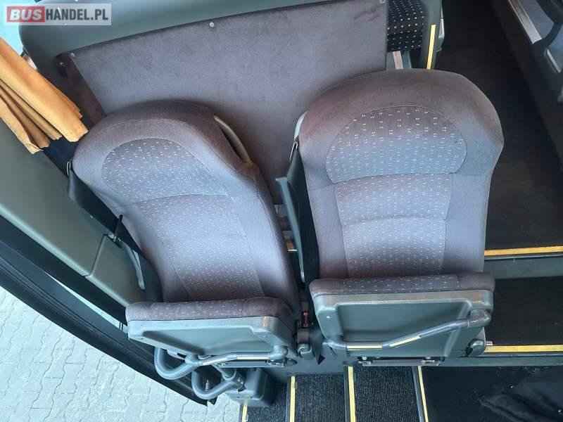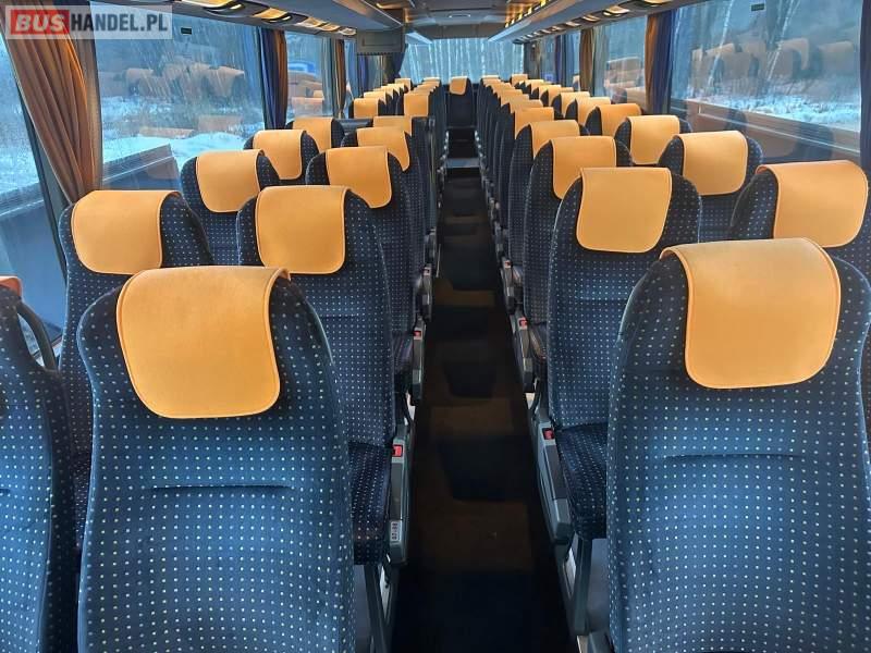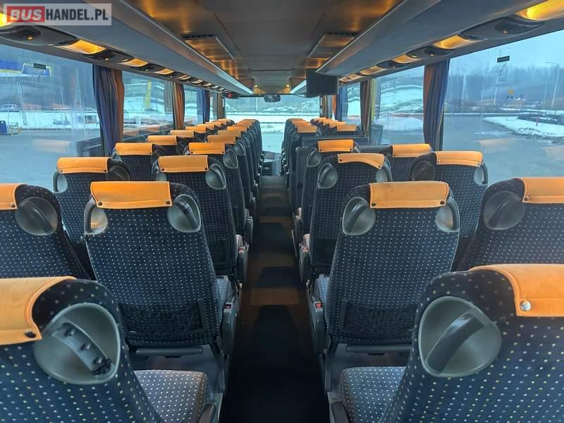 : klimatyzacja, video, WC, lodówka, caffebar, kabina sypialna, oświetlenie indywidualne, nawiewy dyszowe, fotele odchylane, podnóżki, ABS, ASR, tempomat, retarder, telefon, nawigacja, CD, mikrofon, radio, fotele odchylane i rozsuwane, wyświetlacz matrix, sejf, regulacja wysokości nadwozia, centralny zamek, podwójne szyby boczne, wspomaganie kierownicy, elektryczne lusterka, ogrzewanie stacjonarne, DVD, hak holowniczy, ESP