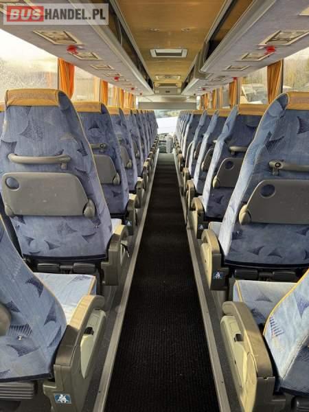 : klimatyzacja, lodówka, kabina sypialna, oświetlenie indywidualne, nawiewy dyszowe, fotele odchylane, podnóżki, stoliczki, siateczki, ABS, ASR, tempomat, retarder, CD, mikrofon, radio, regulacja wysokości nadwozia, centralny zamek, podwójne szyby boczne, wspomaganie kierownicy, elektryczne lusterka, ogrzewanie stacjonarne, DVD, ESP