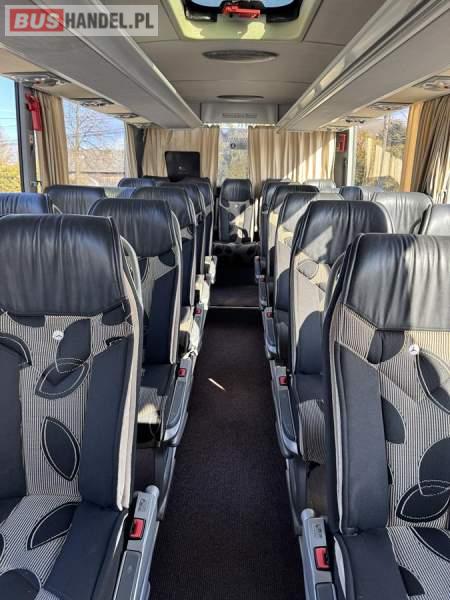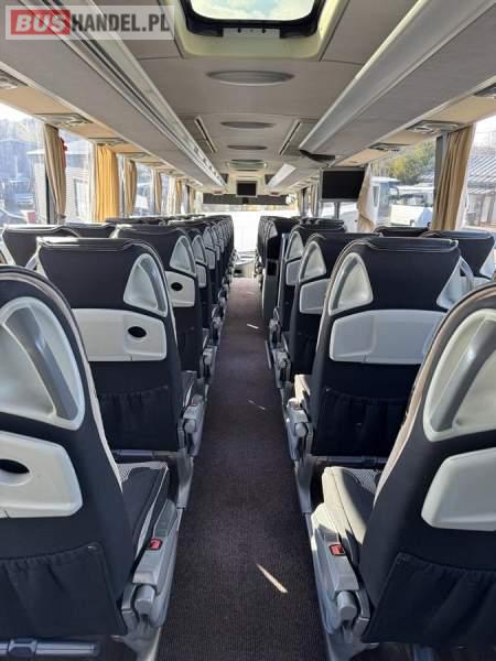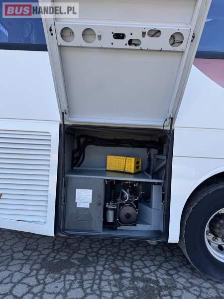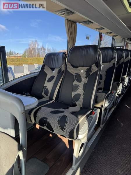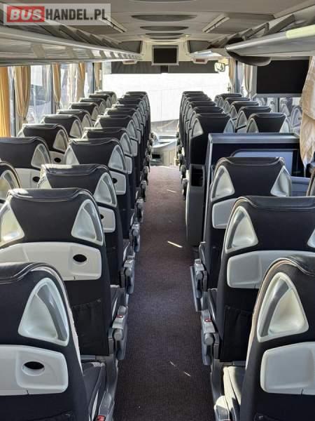 : lodówka, caffebar, fotele odchylane, oświetlenie indywidualne, nawiewy dyszowe, siateczki, ABS, ASR, tempomat, retarder, CD, podnóżki, stoliczki, mikrofon, klimatyzacja, radio, wyświetlacz matrix, regulacja wysokości nadwozia, centralny zamek, podwójne szyby boczne, wspomaganie kierownicy, elektryczne lusterka, DVD, ogrzewanie stacjonarne, ESP