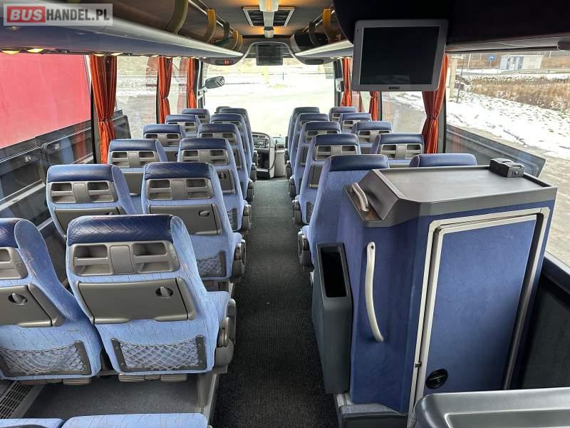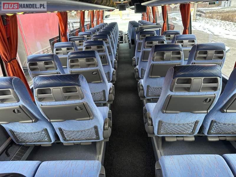 : klimatyzacja, video, WC, lodówka, caffebar, oświetlenie indywidualne, nawiewy dyszowe, fotele odchylane, podnóżki, stoliczki, siateczki, ABS, ASR, tempomat, retarder, telefon, nawigacja, CD, mikrofon, radio, fotele odchylane i rozsuwane, wyświetlacz matrix, sejf, regulacja wysokości nadwozia, centralny zamek, podwójne szyby boczne, wspomaganie kierownicy, elektryczne lusterka, ogrzewanie stacjonarne, DVD, hak holowniczy, ESP