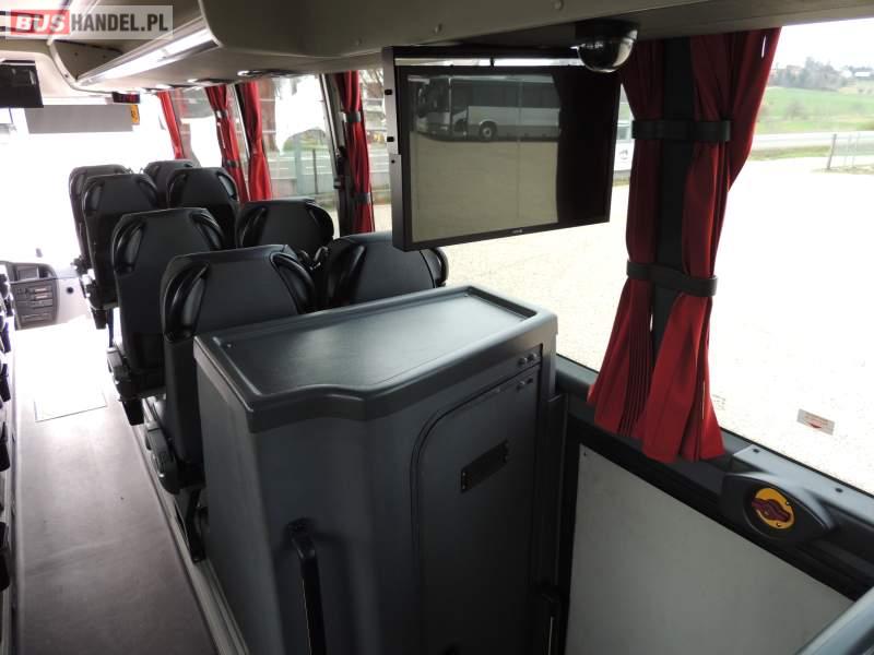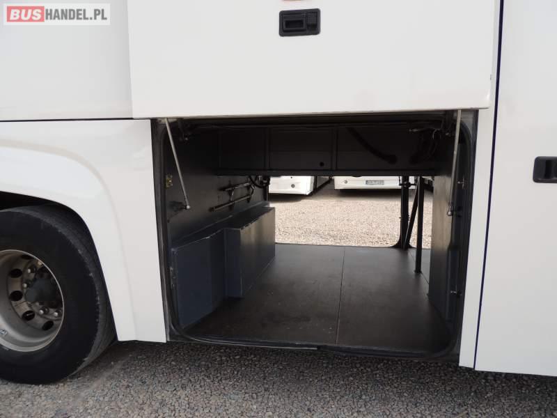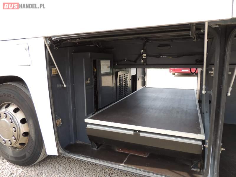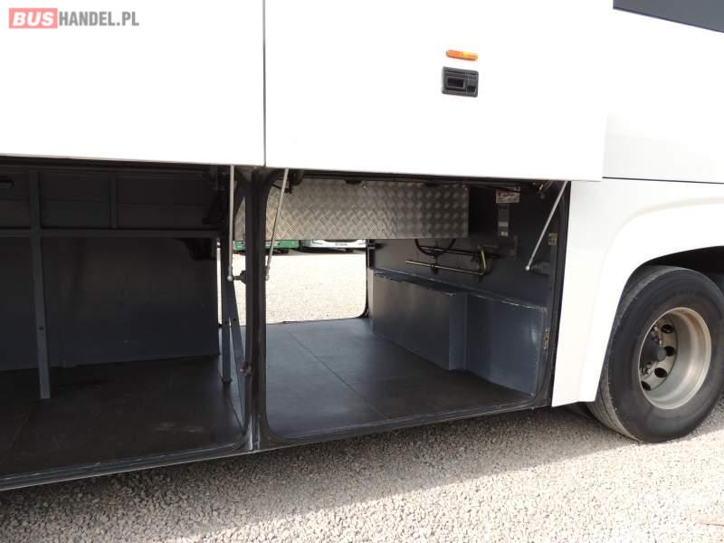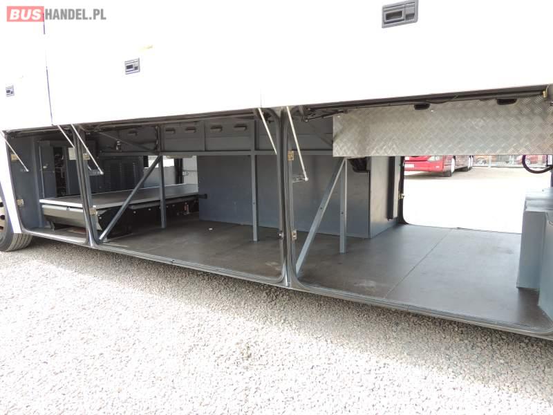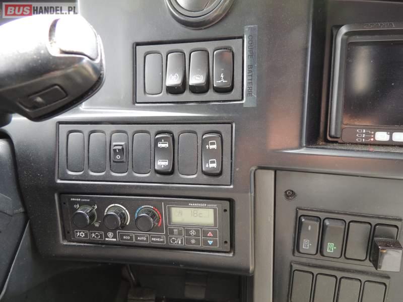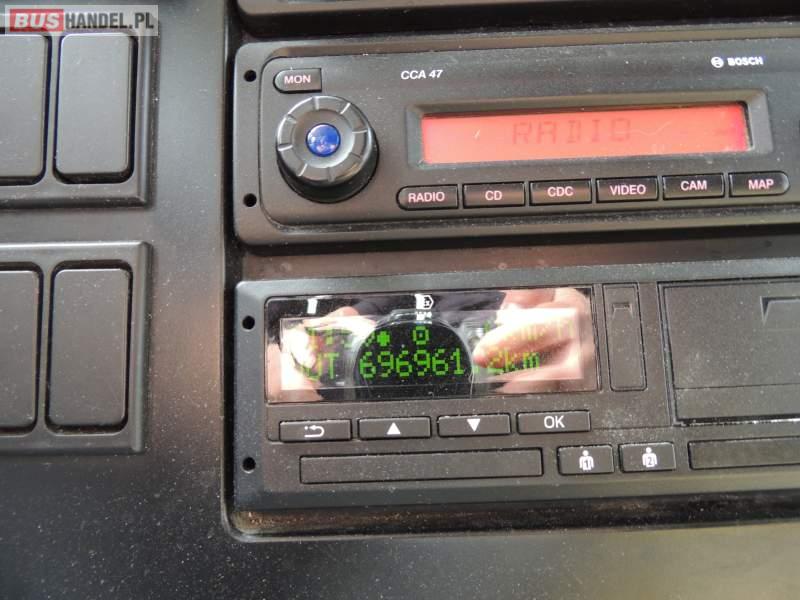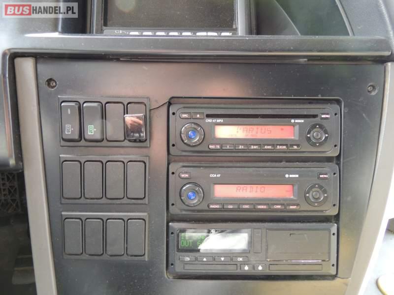 : video, WC, lodówka, oświetlenie indywidualne, nawiewy dyszowe, ABS, ASR, tempomat, retarder, CD, klimatyzacja, radio, rampa dla inwalidów, regulacja wysokości nadwozia, centralny zamek, podwójne szyby boczne, wspomaganie kierownicy, elektryczne lusterka, fotele odchylane i rozsuwane, DVD, ogrzewanie stacjonarne, ESP