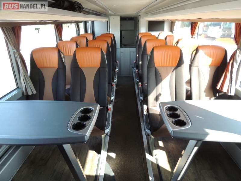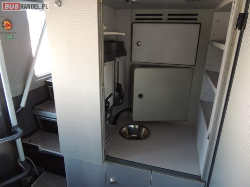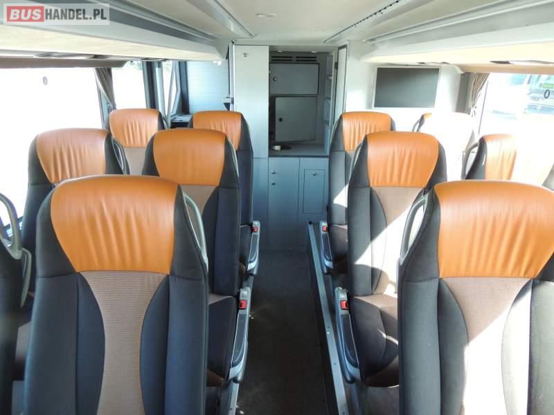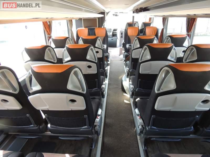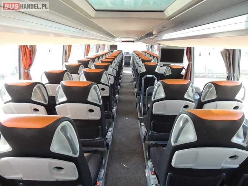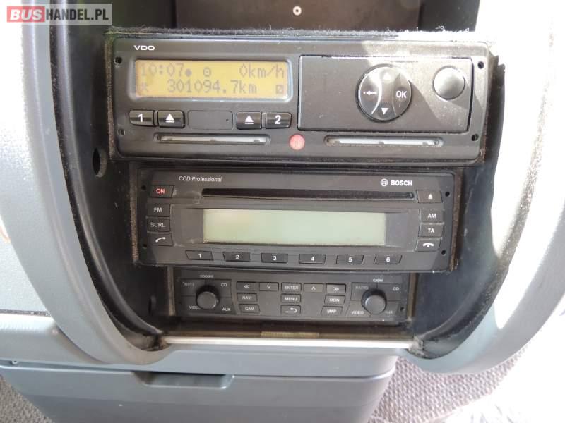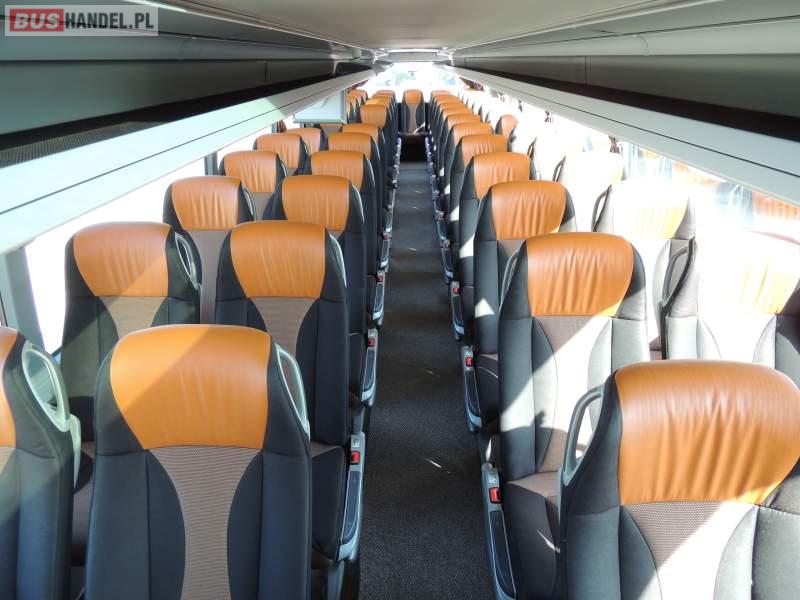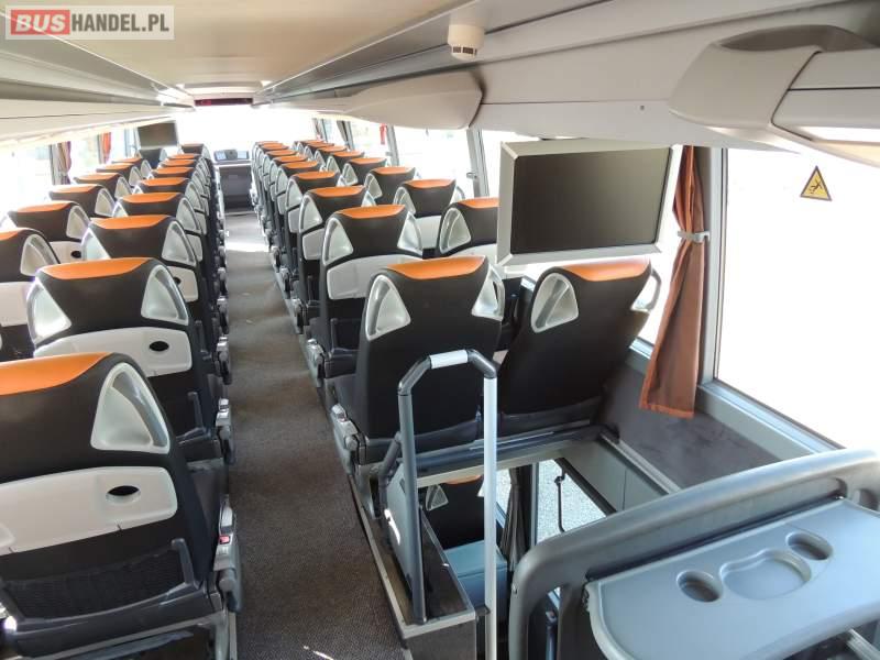: video, WC, lodówka, caffebar, kabina sypialna, oświetlenie indywidualne, nawiewy dyszowe, siateczki, ABS, ASR, tempomat, retarder, CD, podnóżki, stoliczki, mikrofon, klimatyzacja, radio, sejf, regulacja wysokości nadwozia, centralny zamek, podwójne szyby boczne, wspomaganie kierownicy, elektryczne lusterka, fotele odchylane i rozsuwane, DVD, ogrzewanie stacjonarne, ESP