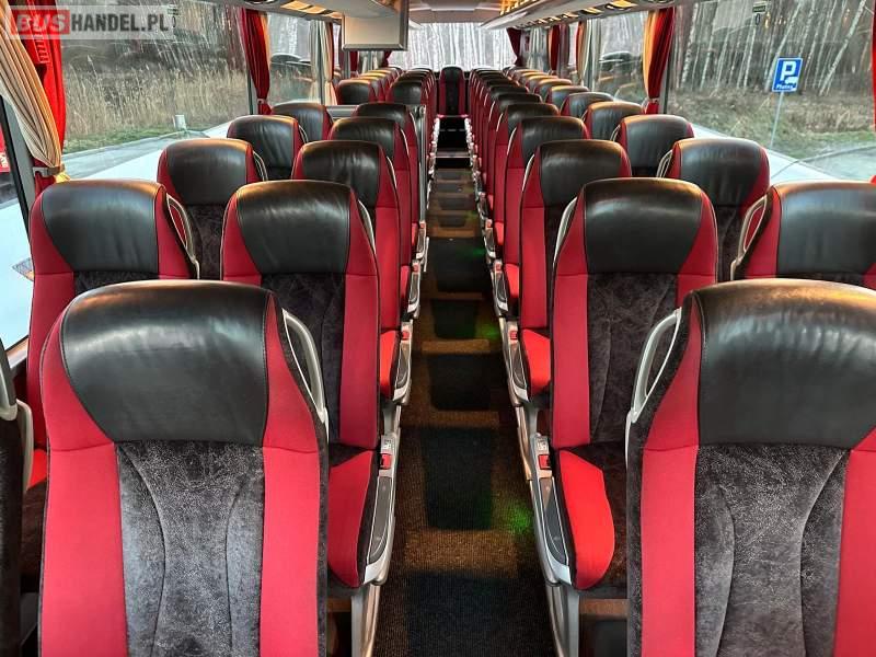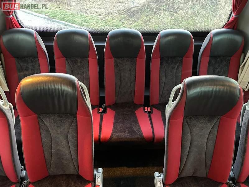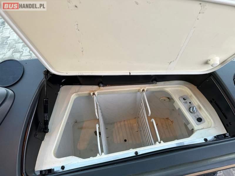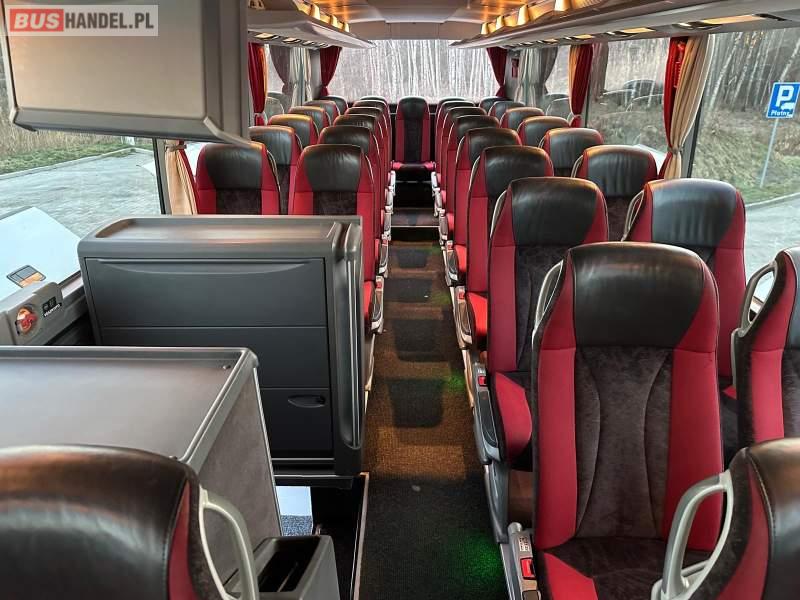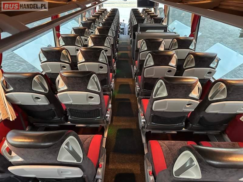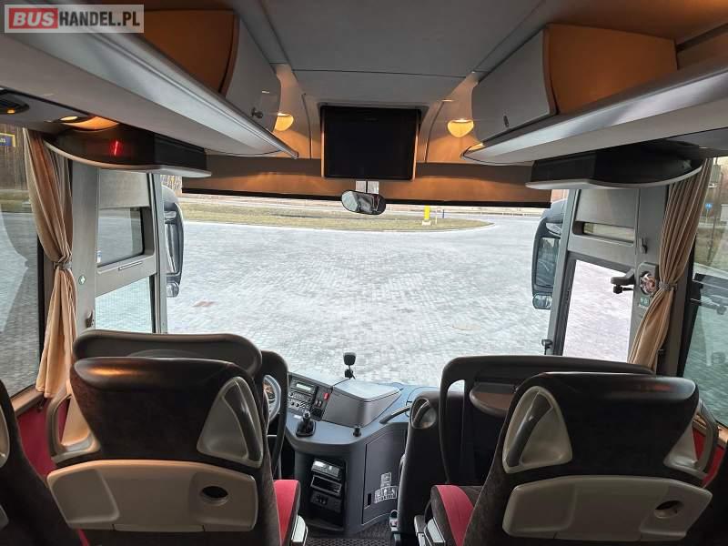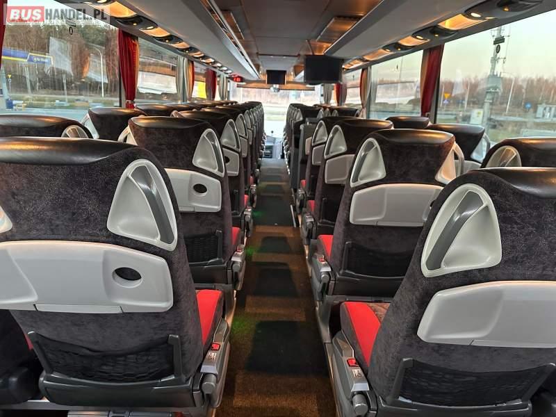 : video, WC, lodówka, caffebar, kabina sypialna, fotele odchylane, oświetlenie indywidualne, nawiewy dyszowe, siateczki, ABS, ASR, tempomat, retarder, telefon, nawigacja, CD, podnóżki, stoliczki, mikrofon, klimatyzacja, radio, wyświetlacz matrix, sejf, regulacja wysokości nadwozia, centralny zamek, podwójne szyby boczne, wspomaganie kierownicy, elektryczne lusterka, fotele odchylane i rozsuwane, DVD, ogrzewanie stacjonarne, hak holowniczy, ESP