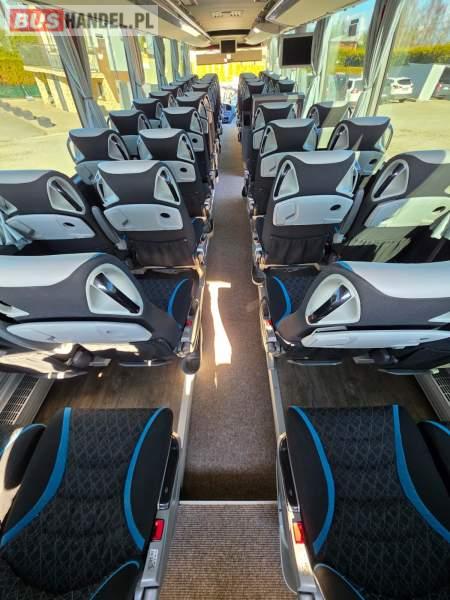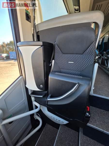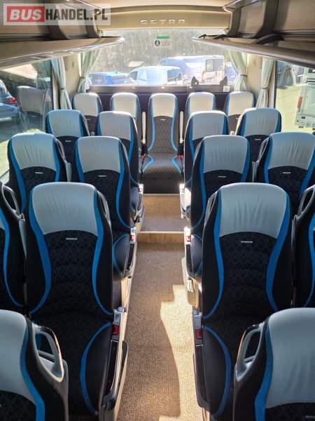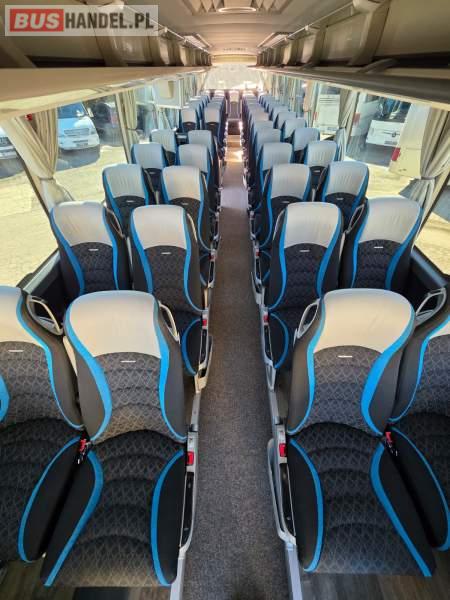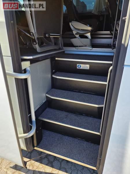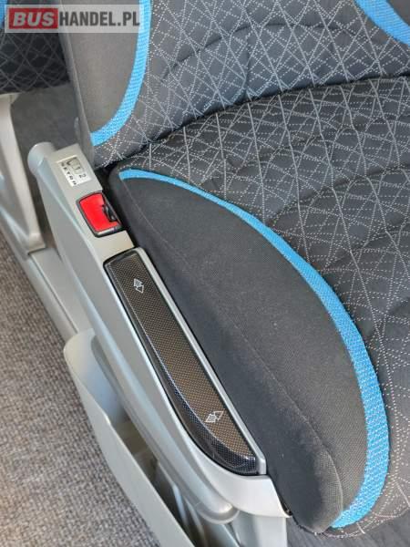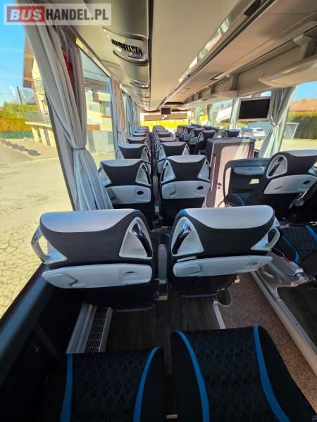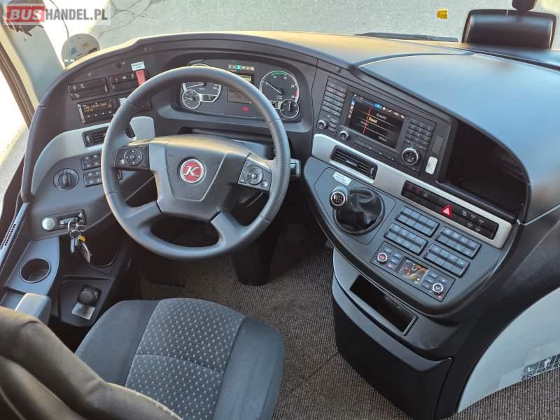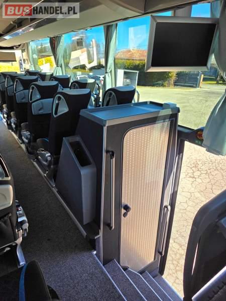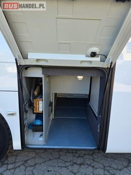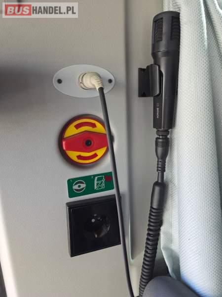 : WC, lodówka, fotele odchylane, oświetlenie indywidualne, nawiewy dyszowe, siateczki, ABS, ASR, tempomat, retarder, nawigacja, CD, podnóżki, stoliczki, mikrofon, klimatyzacja, radio, wyświetlacz matrix, sejf, regulacja wysokości nadwozia, centralny zamek, podwójne szyby boczne, wspomaganie kierownicy, elektryczne lusterka, DVD, ogrzewanie stacjonarne, ESP