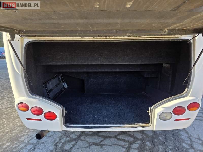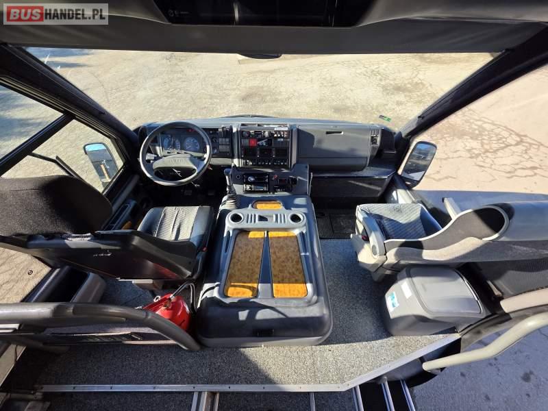 : fotele odchylane, oświetlenie indywidualne, nawiewy dyszowe, siateczki, ABS, ASR, tempomat, retarder, podnóżki, stoliczki, klimatyzacja, regulacja wysokości nadwozia, centralny zamek, podwójne szyby boczne, wspomaganie kierownicy, elektryczne lusterka, ogrzewanie stacjonarne
