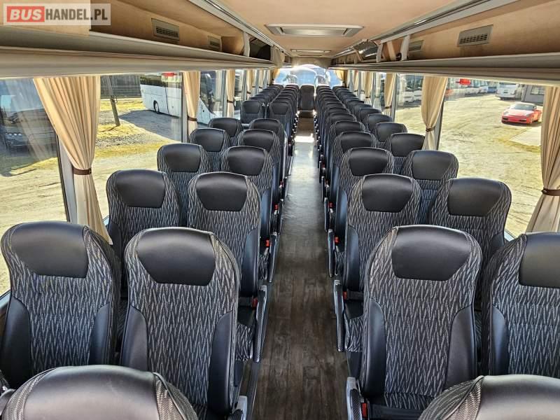 : video, WC, lodówka, caffebar, kabina sypialna, oświetlenie indywidualne, nawiewy dyszowe, siateczki, ABS, ASR, tempomat, retarder, CD, podnóżki, mikrofon, klimatyzacja, radio, sejf, regulacja wysokości nadwozia, centralny zamek, podwójne szyby boczne, wspomaganie kierownicy, elektryczne lusterka, aluminiowe felgi, fotele odchylane i rozsuwane, DVD, ogrzewanie stacjonarne, ESP