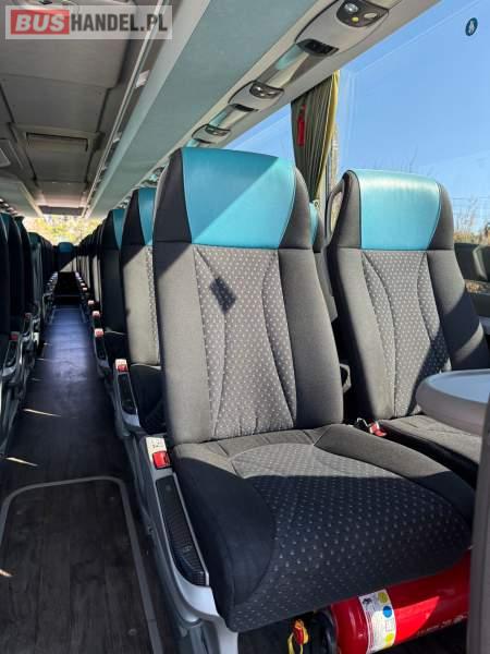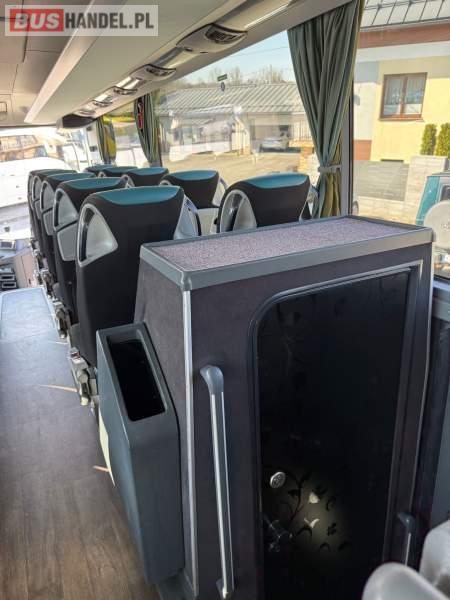 : WC, lodówka, caffebar, kabina sypialna, oświetlenie indywidualne, nawiewy dyszowe, siateczki, ABS, ASR, tempomat, retarder, podnóżki, stoliczki, mikrofon, klimatyzacja, radio, sejf, regulacja wysokości nadwozia, centralny zamek, podwójne szyby boczne, wspomaganie kierownicy, elektryczne lusterka, fotele odchylane i rozsuwane, DVD, ogrzewanie stacjonarne, ESP