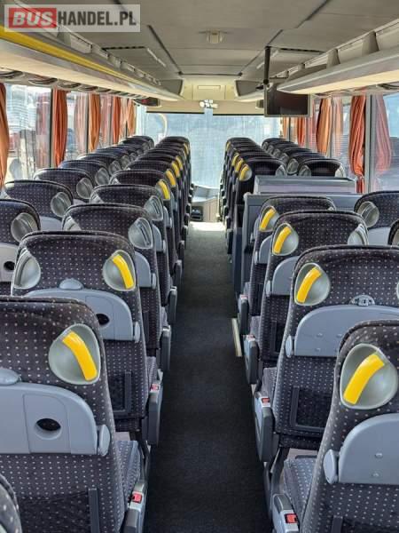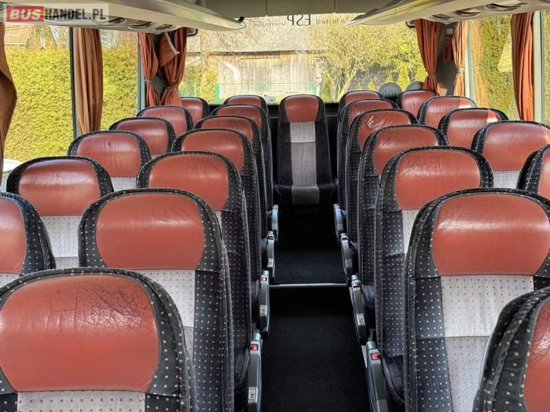 : WC, lodówka, caffebar, fotele odchylane, oświetlenie indywidualne, nawiewy dyszowe, siateczki, ABS, ASR, tempomat, retarder, CD, stoliczki, mikrofon, klimatyzacja, radio, sejf, regulacja wysokości nadwozia, centralny zamek, podwójne szyby boczne, wspomaganie kierownicy, elektryczne lusterka, DVD, ogrzewanie stacjonarne, ESP