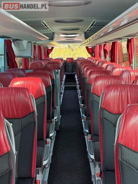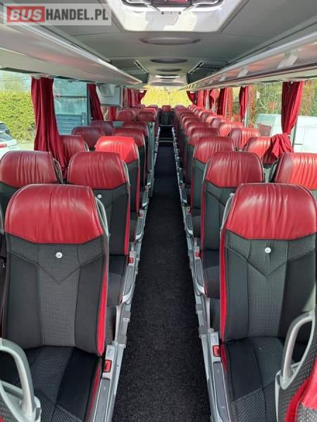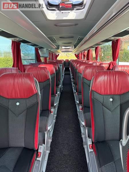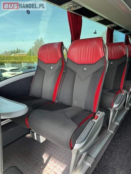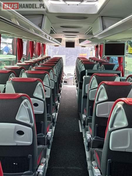 : WC, lodówka, kabina sypialna, fotele odchylane, oświetlenie indywidualne, nawiewy dyszowe, siateczki, ABS, ASR, tempomat, retarder, CD, podnóżki, stoliczki, mikrofon, klimatyzacja, radio, sejf, regulacja wysokości nadwozia, centralny zamek, podwójne szyby boczne, wspomaganie kierownicy, elektryczne lusterka, DVD, ogrzewanie stacjonarne, ESP