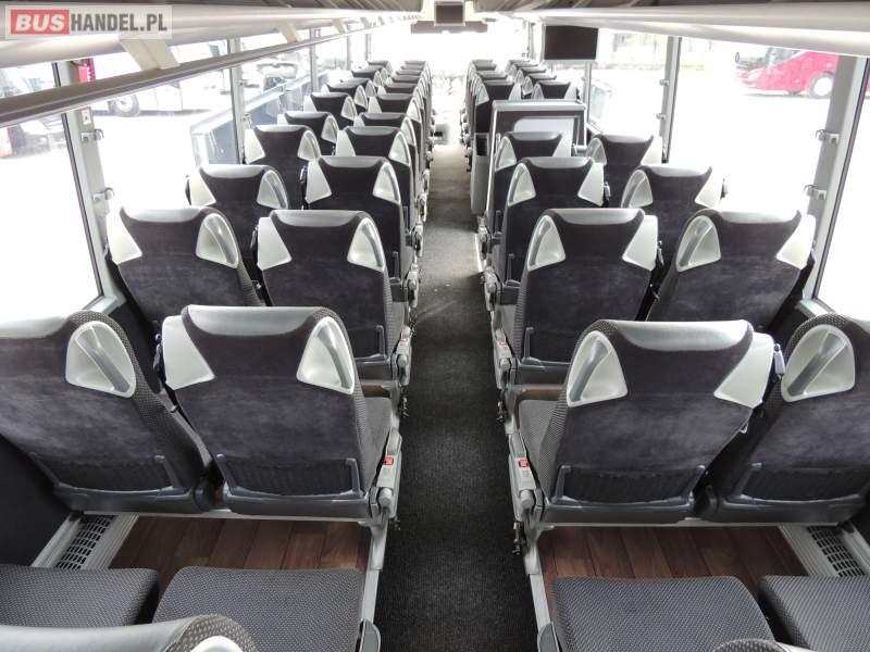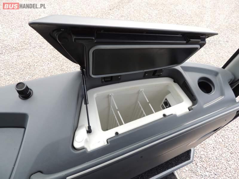 : video, WC, lodówka, oświetlenie indywidualne, nawiewy dyszowe, ABS, ASR, tempomat, retarder, CD, klimatyzacja, radio, regulacja wysokości nadwozia, centralny zamek, podwójne szyby boczne, wspomaganie kierownicy, elektryczne lusterka, fotele odchylane i rozsuwane, DVD, ogrzewanie stacjonarne, ESP