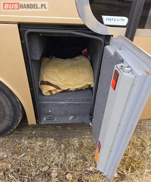 : video, WC, lodówka, kabina sypialna, fotele odchylane, oświetlenie indywidualne, nawiewy dyszowe, siateczki, ABS, ASR, tempomat, retarder, CD, podnóżki, mikrofon, klimatyzacja, radio, regulacja wysokości nadwozia, podwójne szyby boczne, wspomaganie kierownicy, elektryczne lusterka, aluminiowe felgi, DVD, ogrzewanie stacjonarne, ESP