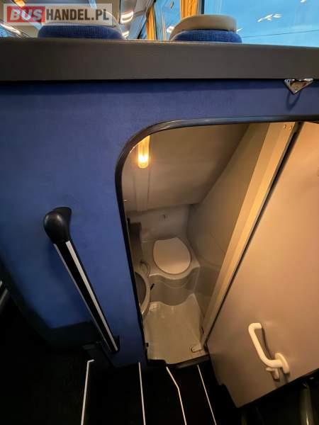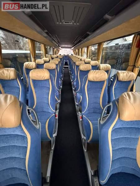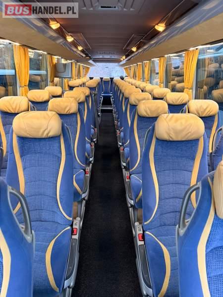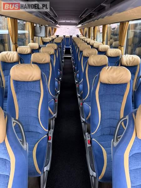 : video, WC, lodówka, caffebar, oświetlenie indywidualne, nawiewy dyszowe, siateczki, ABS, ASR, tempomat, retarder, nawigacja, CD, podnóżki, stoliczki, mikrofon, klimatyzacja, radio, regulacja wysokości nadwozia, centralny zamek, podwójne szyby boczne, wspomaganie kierownicy, elektryczne lusterka, fotele odchylane i rozsuwane, DVD, ogrzewanie stacjonarne, ESP