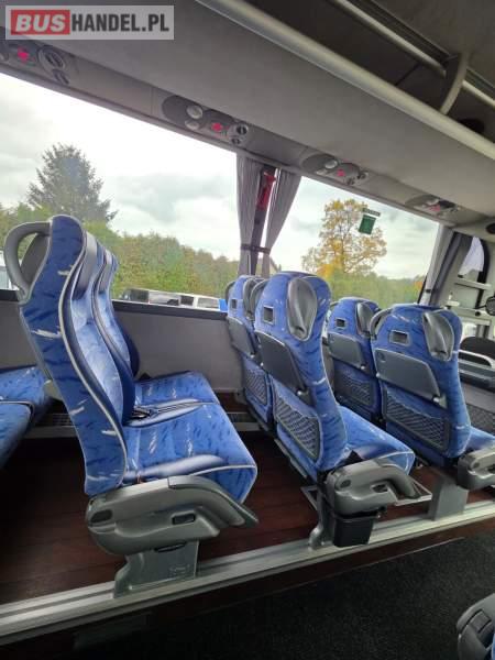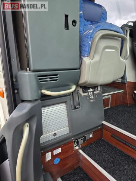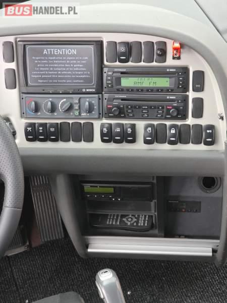 : WC, lodówka, caffebar, oświetlenie indywidualne, nawiewy dyszowe, siateczki, ABS, ASR, tempomat, retarder, podnóżki, stoliczki, mikrofon, klimatyzacja, radio, sejf, regulacja wysokości nadwozia, centralny zamek, podwójne szyby boczne, wspomaganie kierownicy, elektryczne lusterka, fotele odchylane i rozsuwane, DVD, ogrzewanie stacjonarne, ESP