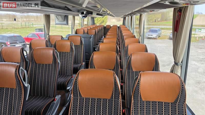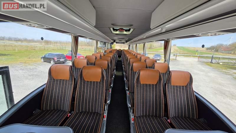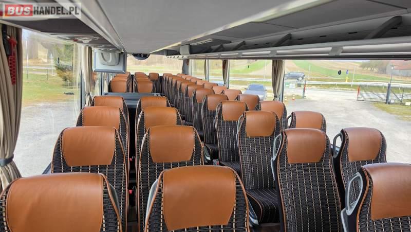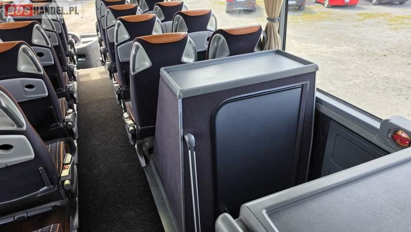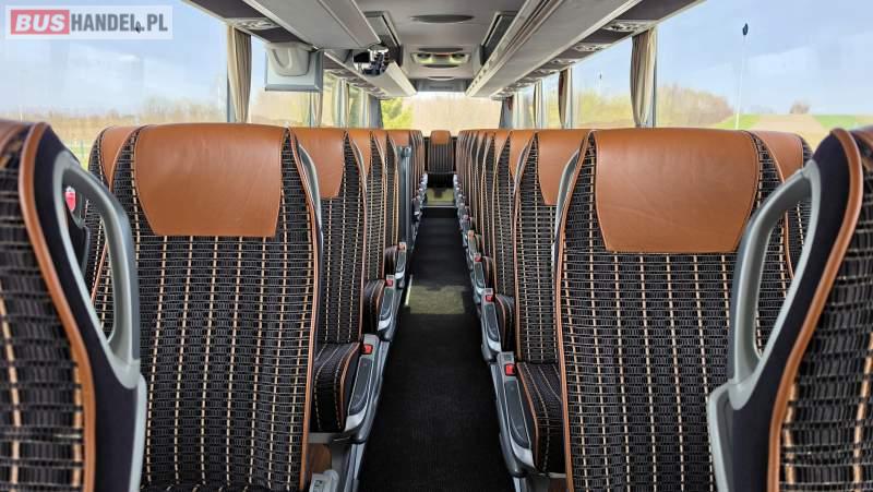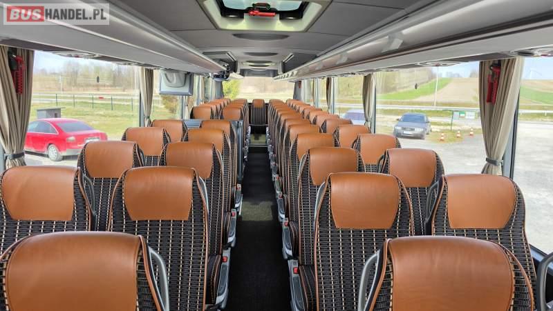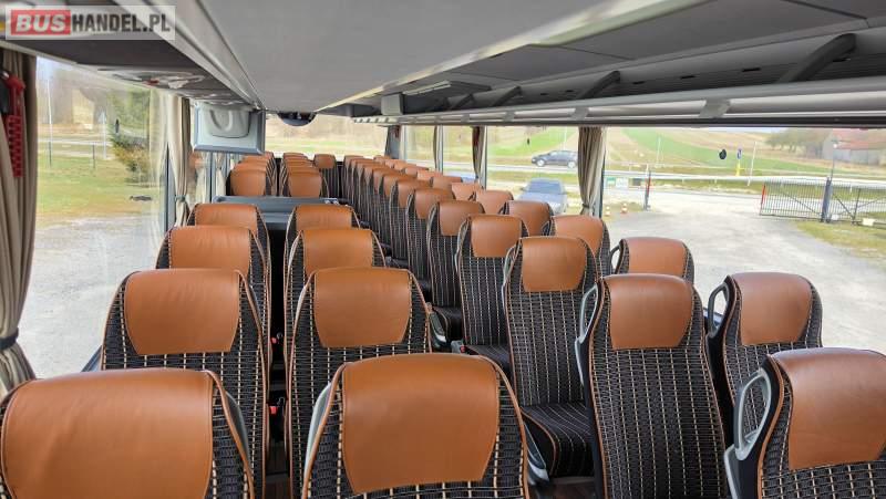 : video, WC, lodówka, caffebar, kabina sypialna, oświetlenie indywidualne, nawiewy dyszowe, siateczki, ABS, retarder, CD, podnóżki, stoliczki, mikrofon, klimatyzacja, radio, sejf, regulacja wysokości nadwozia, centralny zamek, podwójne szyby boczne, wspomaganie kierownicy, elektryczne lusterka, fotele odchylane i rozsuwane, DVD, ogrzewanie stacjonarne, ESP