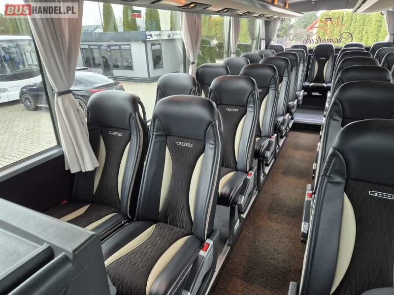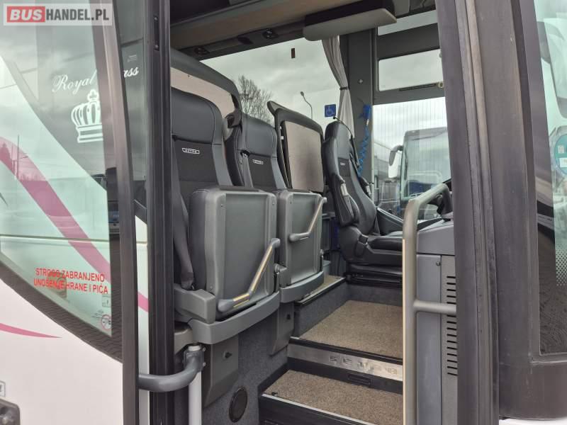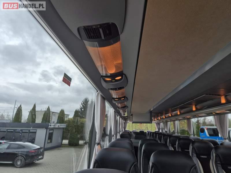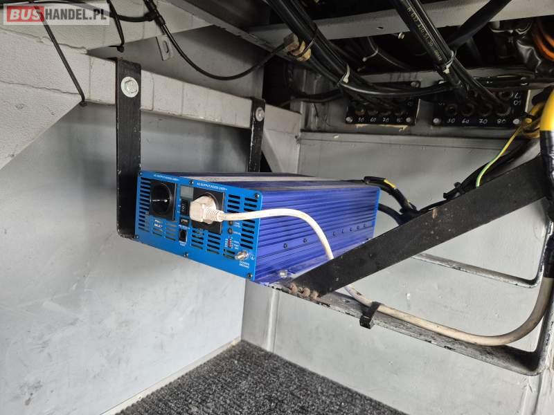 : video, WC, lodówka, fotele odchylane, oświetlenie indywidualne, ABS, tempomat, retarder, CD, podnóżki, mikrofon, klimatyzacja, radio, sejf, regulacja wysokości nadwozia, centralny zamek, podwójne szyby boczne, wspomaganie kierownicy, elektryczne lusterka, DVD, ogrzewanie stacjonarne